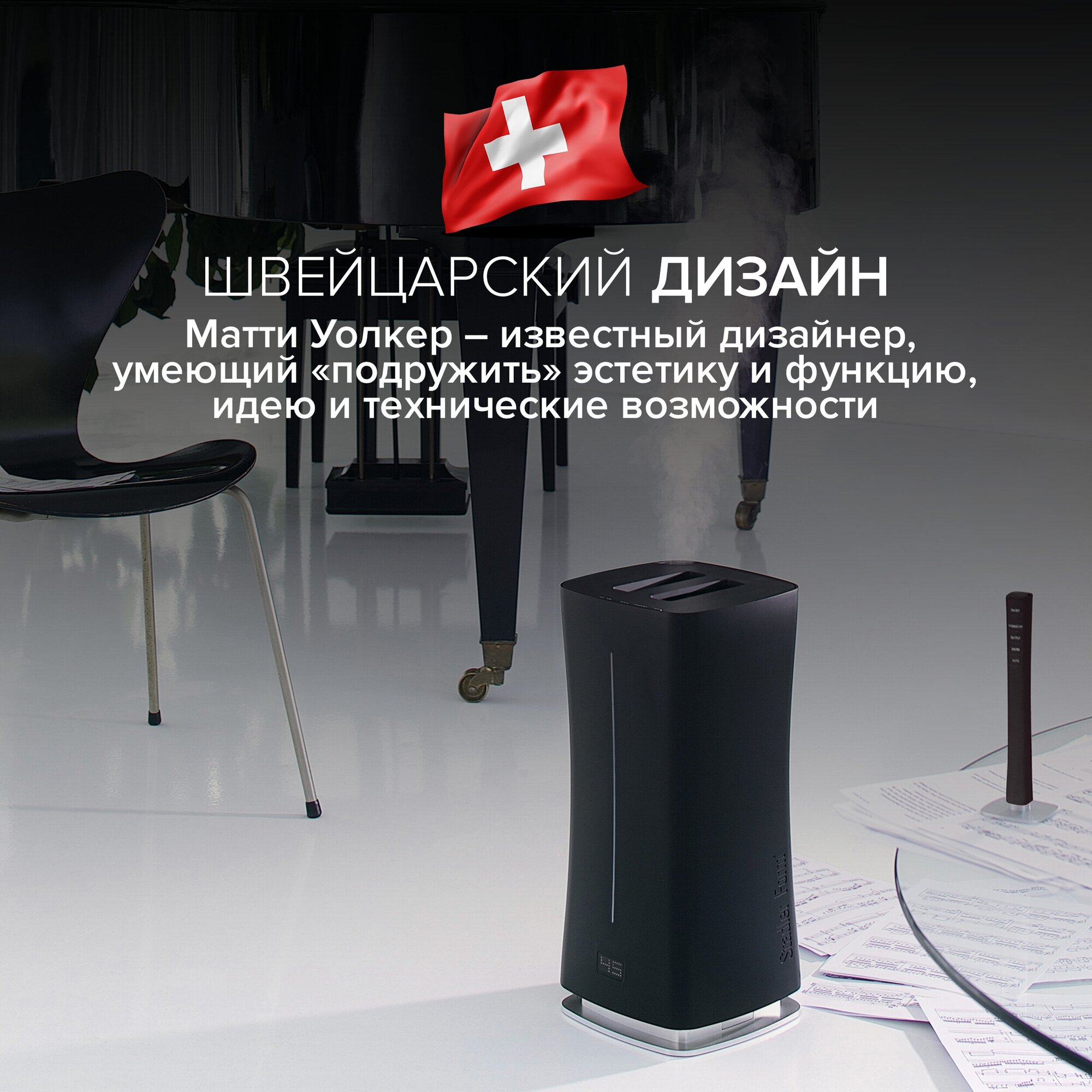 Ультразвуковой увлажнитель Stadler Form (Штадлер Форм) Eva black WiFi, ; черный благодаря изысканному черному дизайну, будет отлично смотреться в любом помещении с любым интерьером. Модель обладает обширным функционалом и возможностью выбора режимов работы, а также оснащена пультом дистанционного управления со встроенным гигрометром.