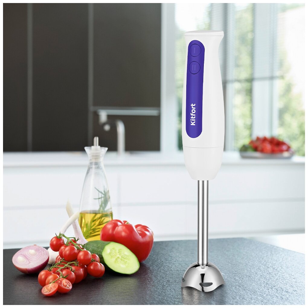 Погружной блендер Kitfort КТ-3051 предназначен для смешивания, взбивания, гомогенизации, приготовления фруктовых и фитнес-напитков, супов-пюре, соусов, муссов, молочных коктейлей, детского питания, а также для замеса жидкого теста.