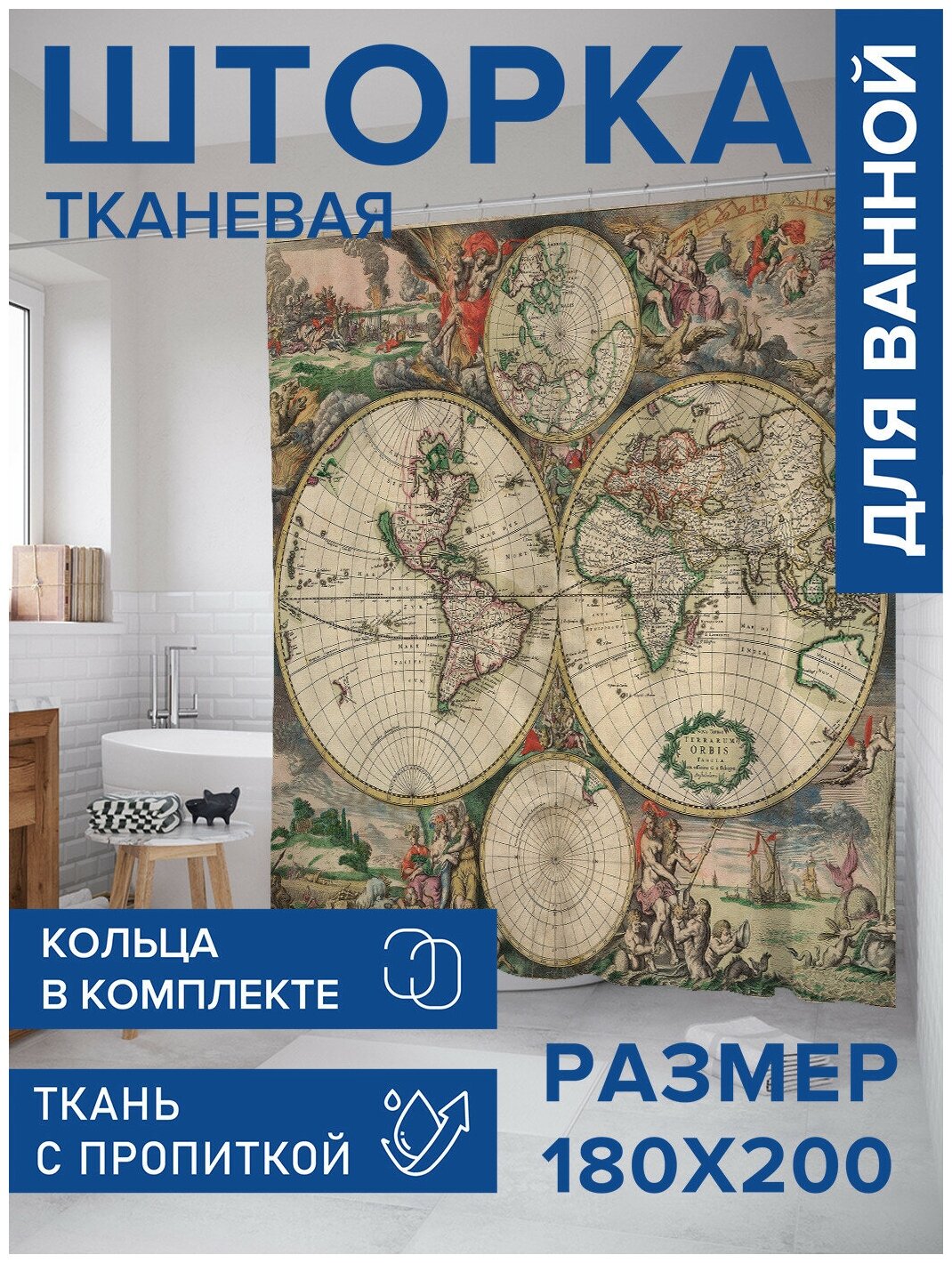 Шторка-занавеска для ванной JOYARTY Штора для ванной Древний атлас 180х200 см