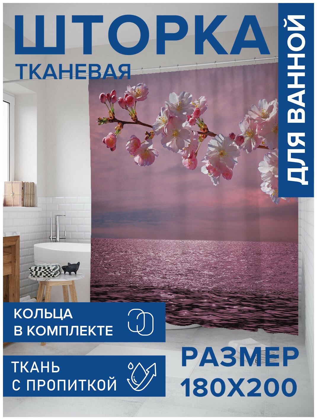 Красиво декорированная шторка, защищающая пол и оборудование ванной комнаты от брызг воды, изготовлена из полиэстера и обладает выраженными водоотталкивающими свойствами. Занавеска для ванной 180х200 комплектуется 12 прочными крючками из пластика и имеет в верхней части столько же обработанных на оверлоке отверстий. Декоративный рисунок нанесен на поверхность ткани при помощи фотопечати. Такие принты не боятся влаги и не смываются даже очень горячей водой.