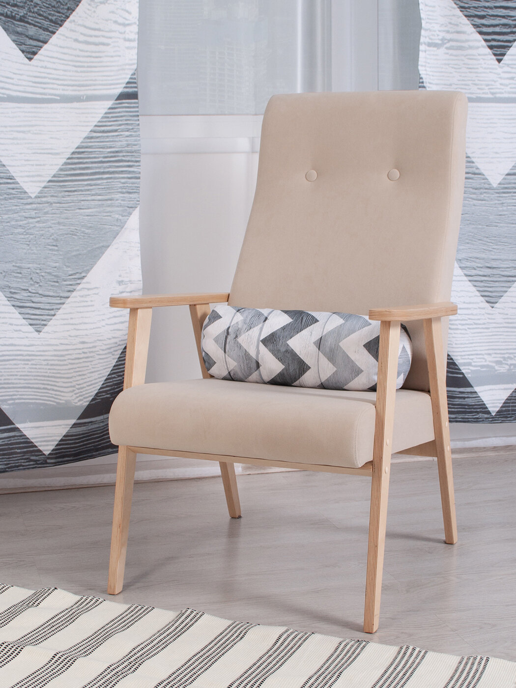 Модель: Декоративная подушка валик на молнии Будничный зигзаг 45 см