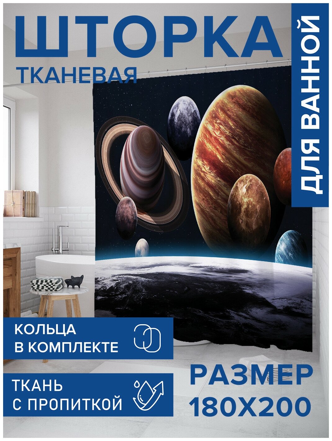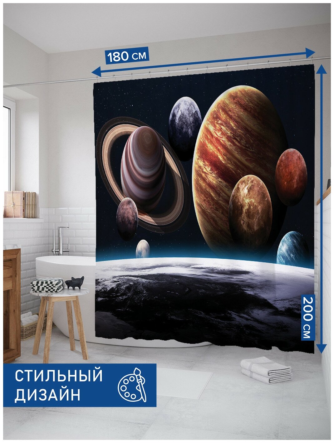 Шторка-занавеска для ванной JOYARTY Штора для ванной Солнечная система 180х200 см