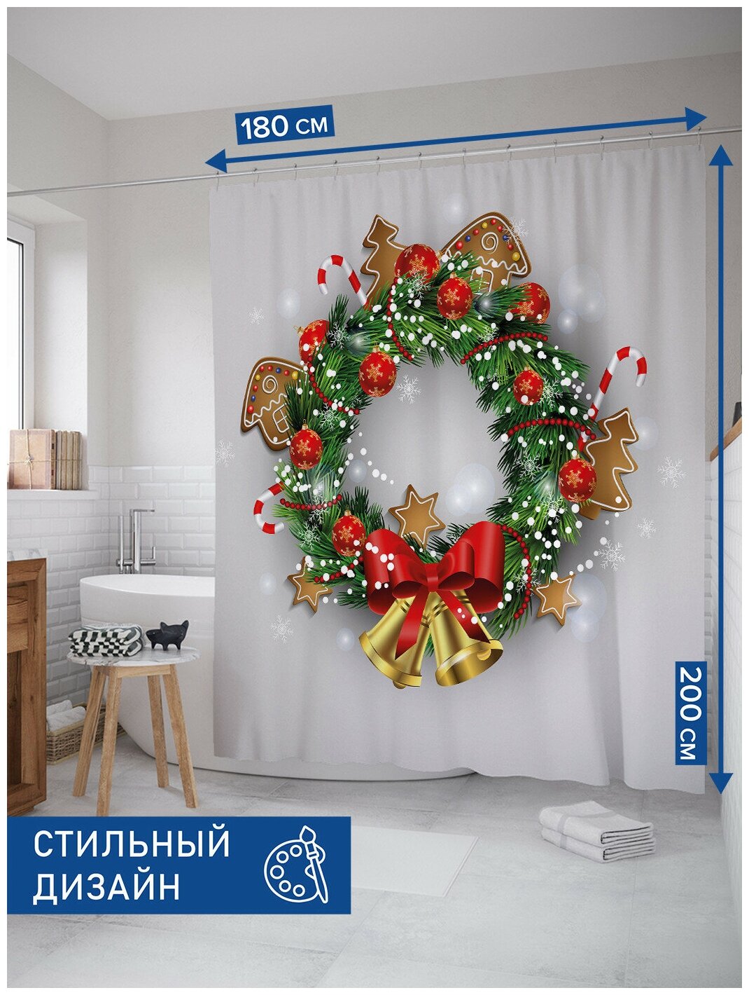Модель: Штора для ванной Колокольчики на венке 180х200 см