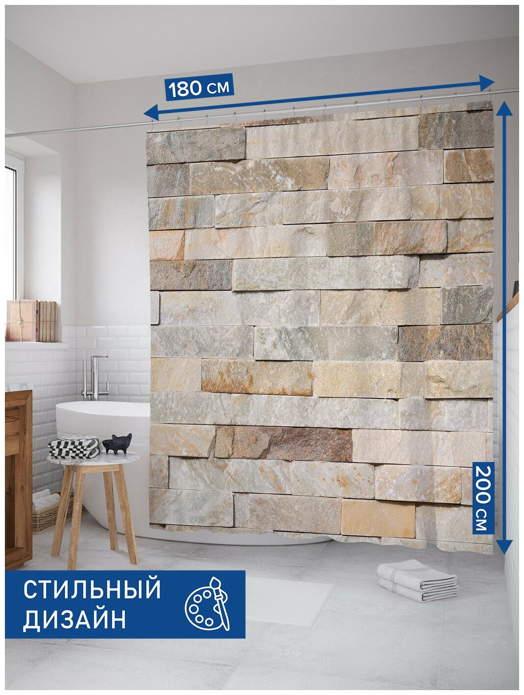 Шторка-занавеска для ванной JOYARTY Штора для ванной Каменная стена 180х200 см