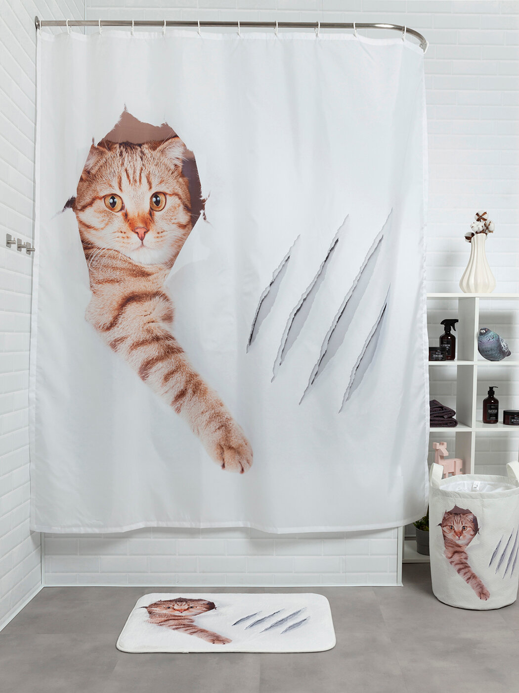 Шторка-занавеска для ванной JOYARTY Штора для ванной Кот с царапиной 180х200 см