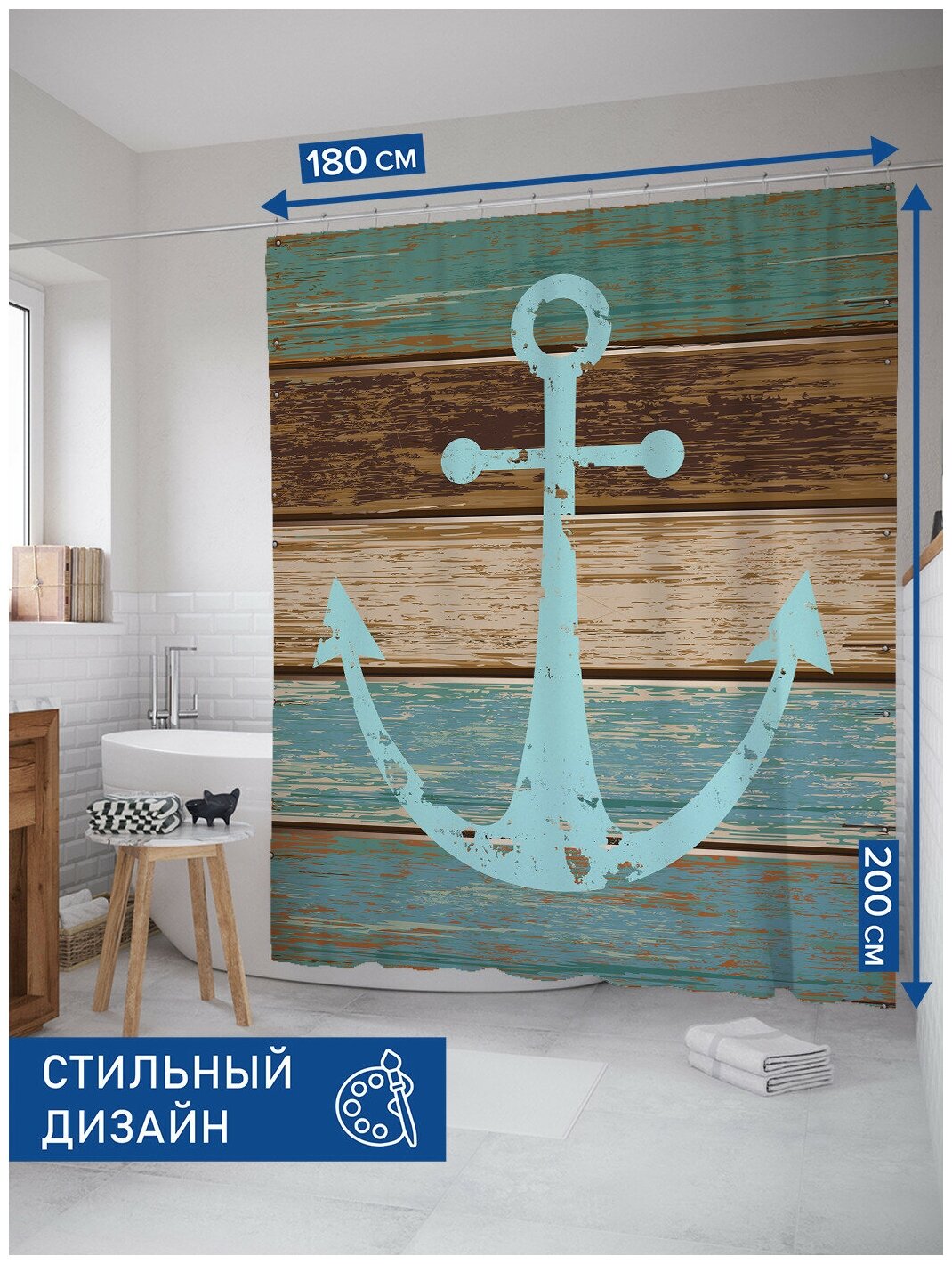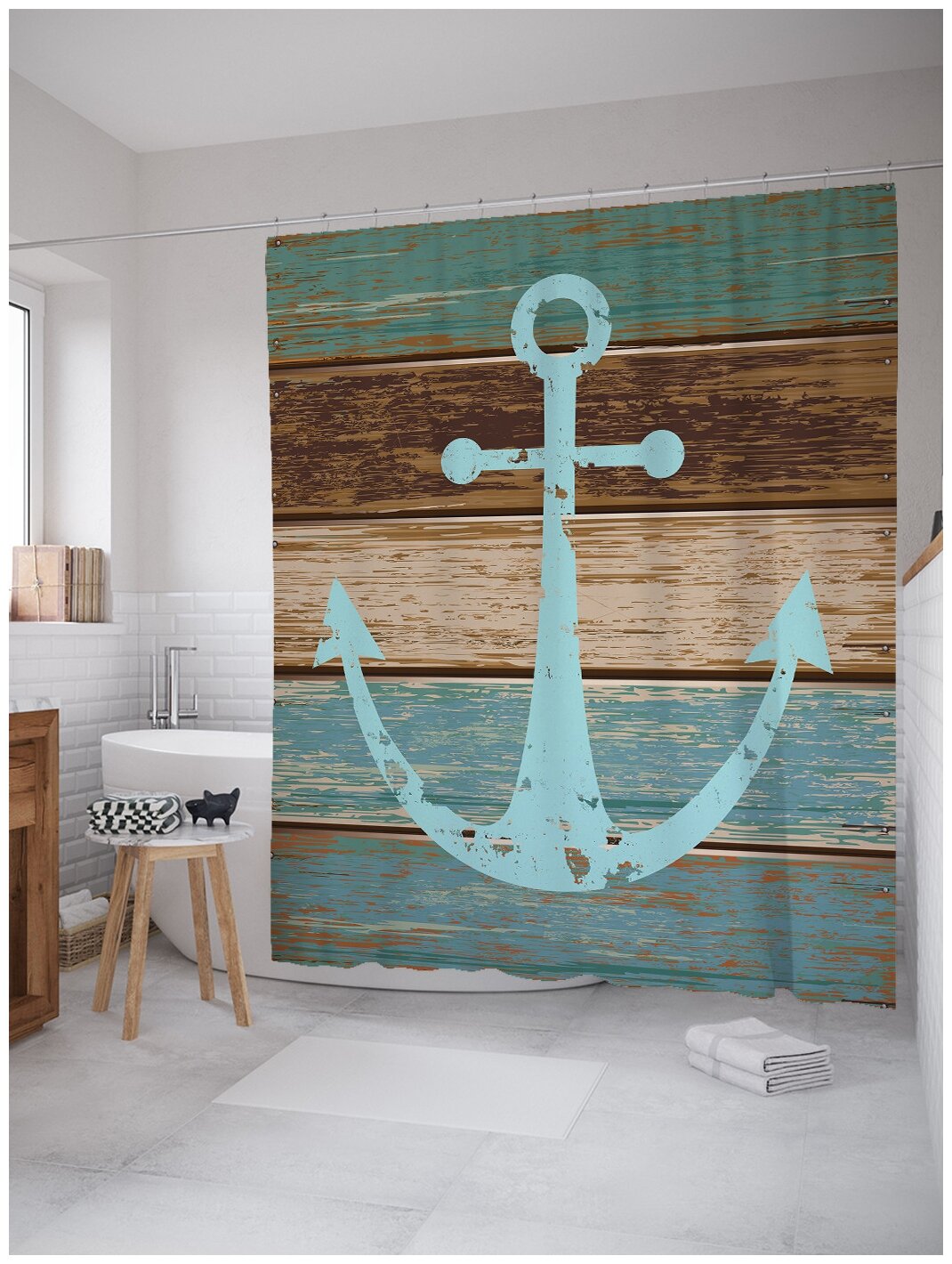 Шторка-занавеска для ванной JOYARTY Штора для ванной Потертый якорь на досках 180х200 см