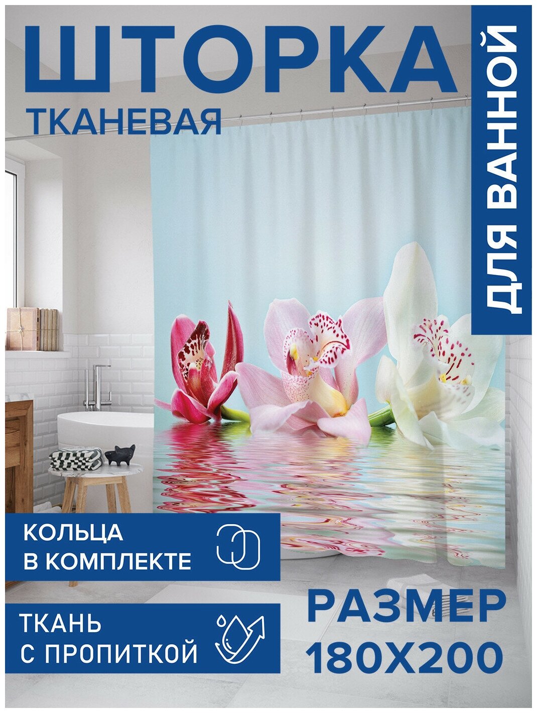 Шторка-занавеска для ванной JOYARTY Штора для ванной Плавающие цветы 180х200 см
