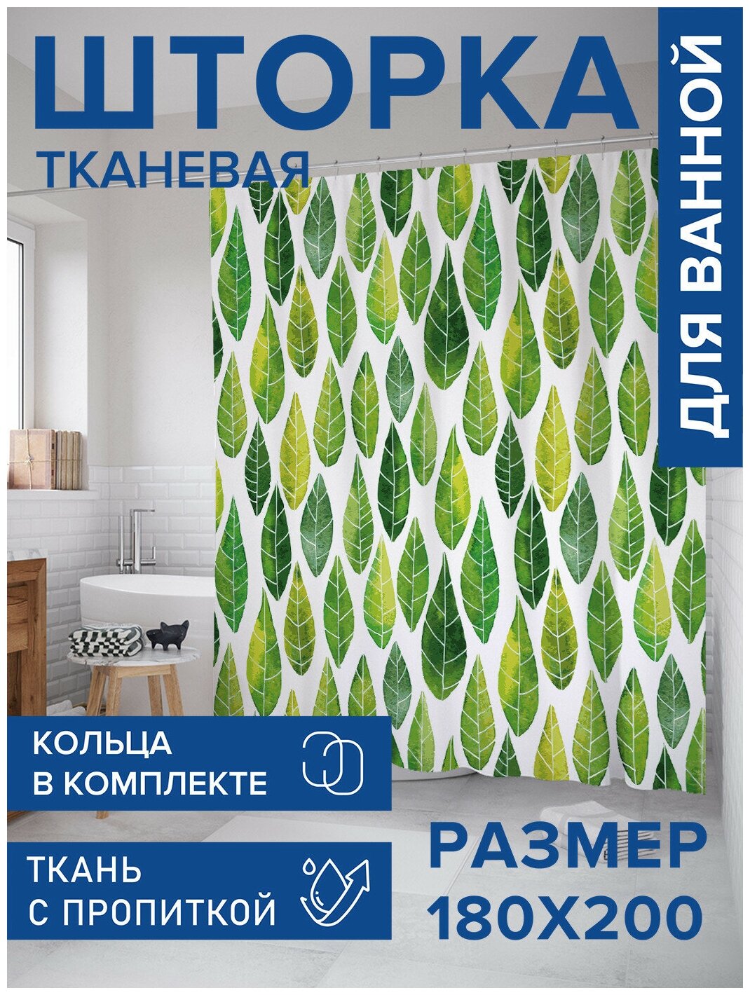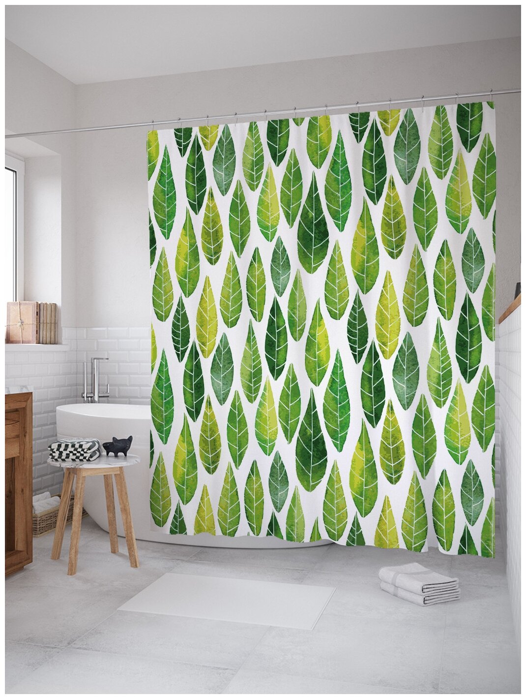 Шторка-занавеска для ванной JOYARTY Штора для ванной Зеленые листья 180х200 см