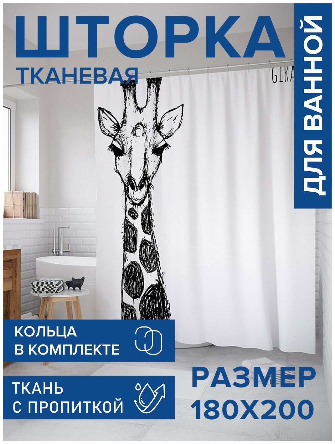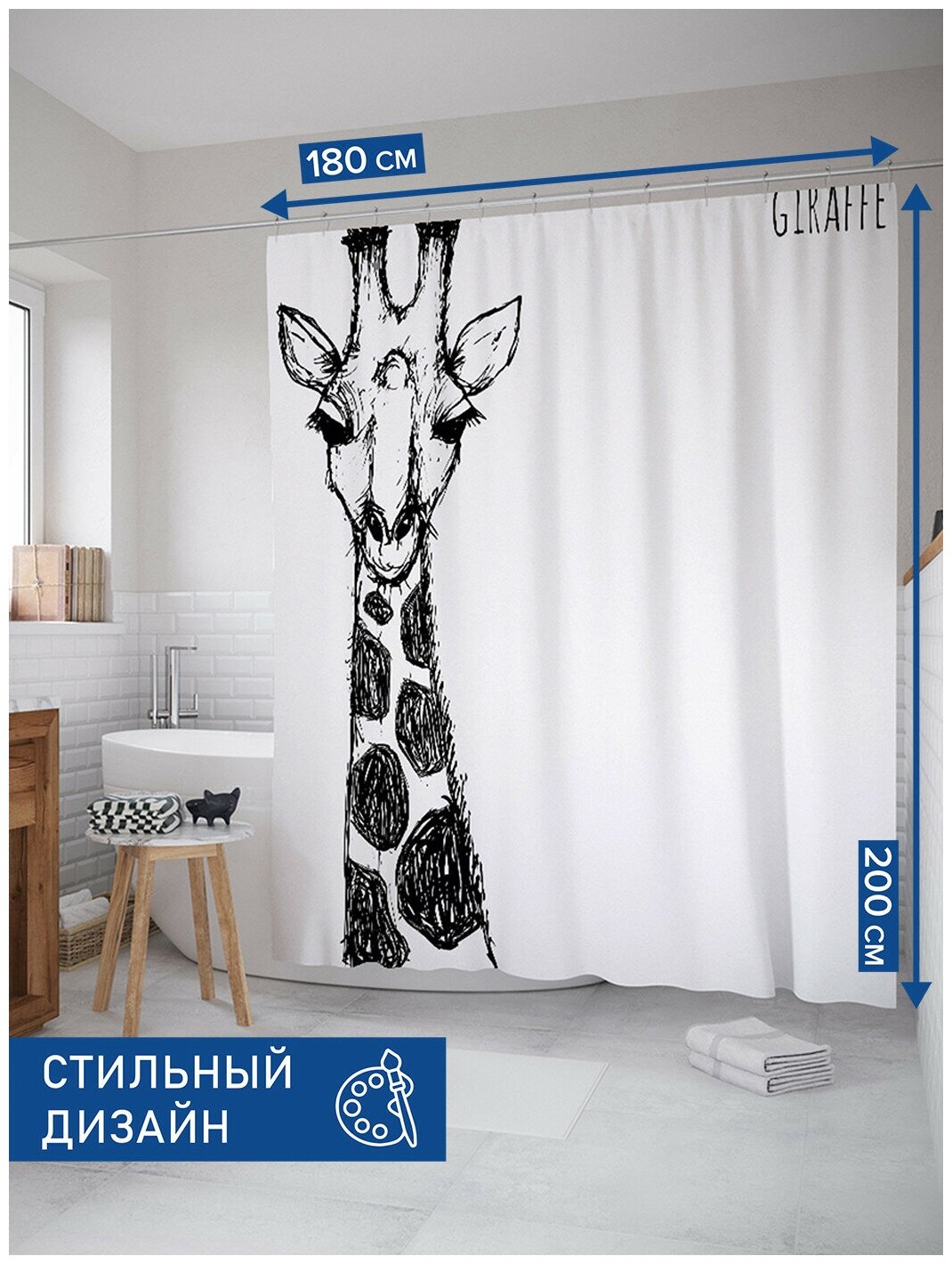 Модель: Штора для ванной Скромный жираф 180х200 см