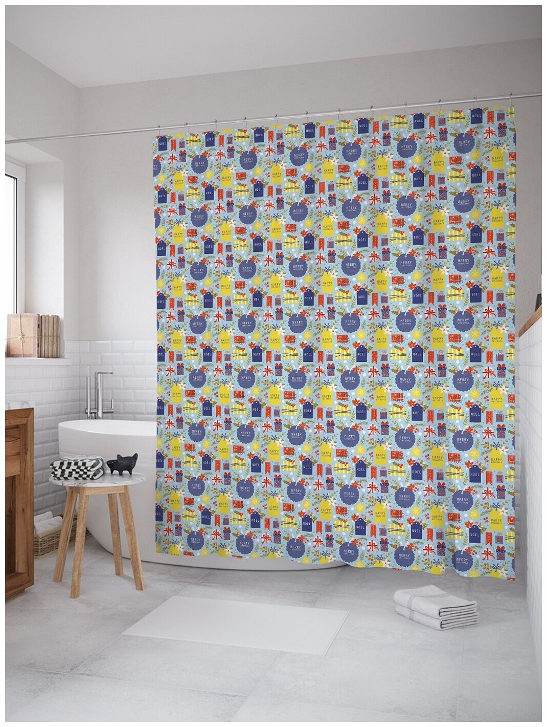 Красиво декорированная шторка, защищающая пол и оборудование ванной комнаты от брызг воды, изготовлена из полиэстера и обладает выраженными водоотталкивающими свойствами. Занавеска для ванной 180х200 комплектуется 12 прочными крючками из пластика и имеет в верхней части столько же обработанных на оверлоке отверстий. Декоративный рисунок нанесен на поверхность ткани при помощи фотопечати. Такие принты не боятся влаги и не смываются даже очень горячей водой.
