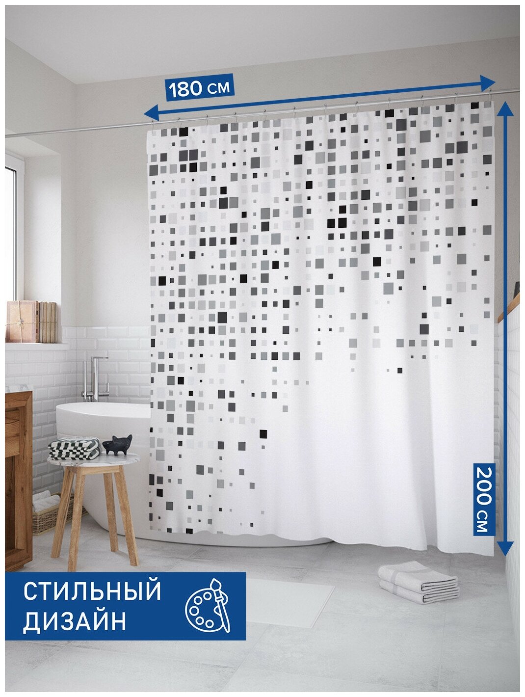 Шторка-занавеска для ванной JOYARTY Штора для ванной Квадратное насыщение 180х200 см