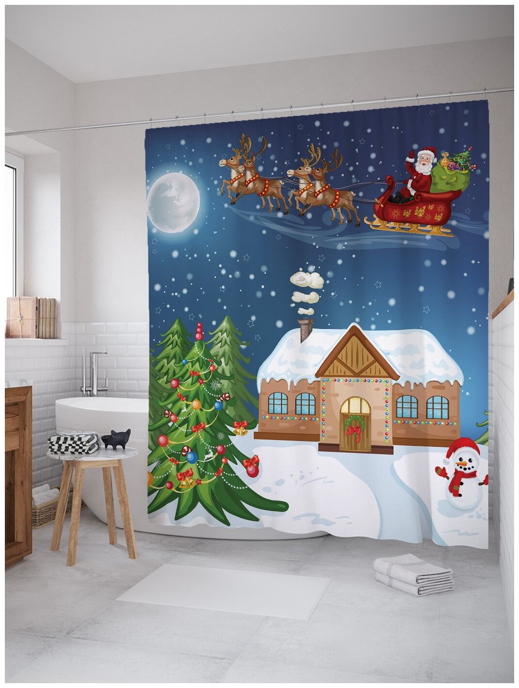 Штора (занавеска) для ванной JoyArty "Встреча с Сантой" из сатена 180х200 см с крючками Штора для ванной Встреча с Сантой 180х200 см