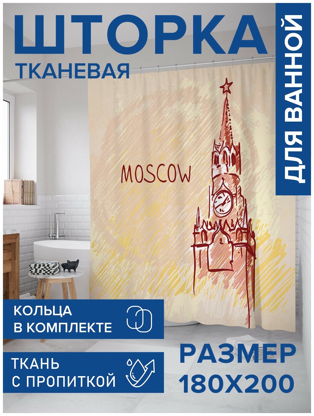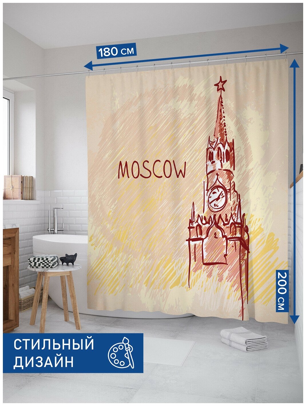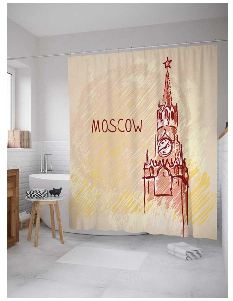 Шторка-занавеска для ванной JOYARTY Штора для ванной Московское время 180х200 см