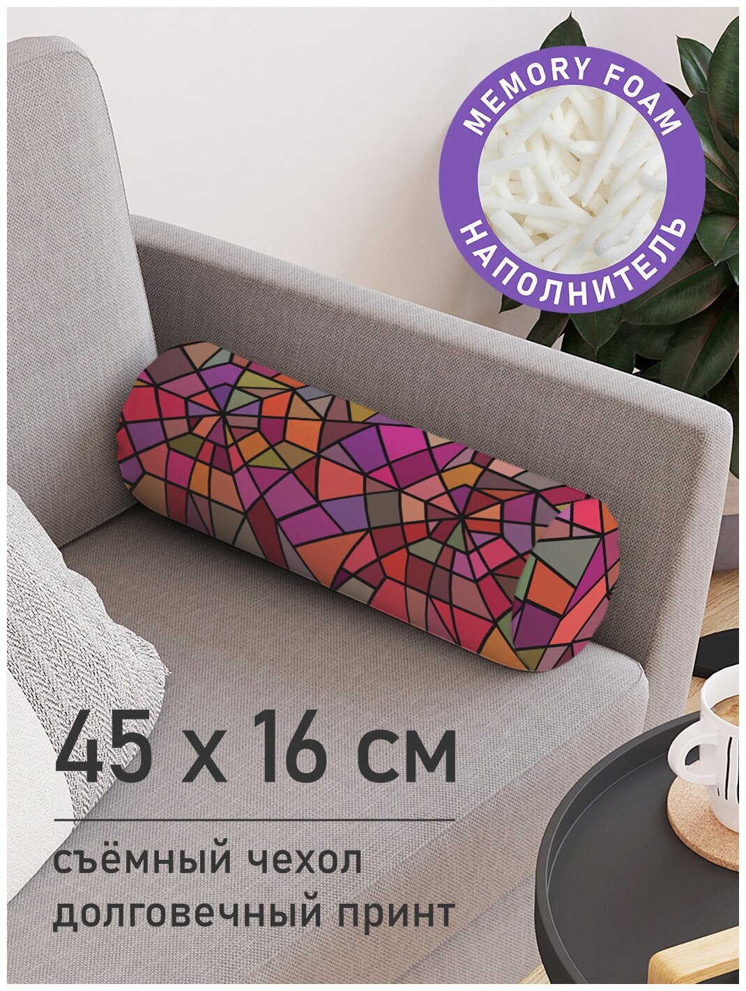 Модель: Декоративная подушка валик на молнии Витраж 45 см