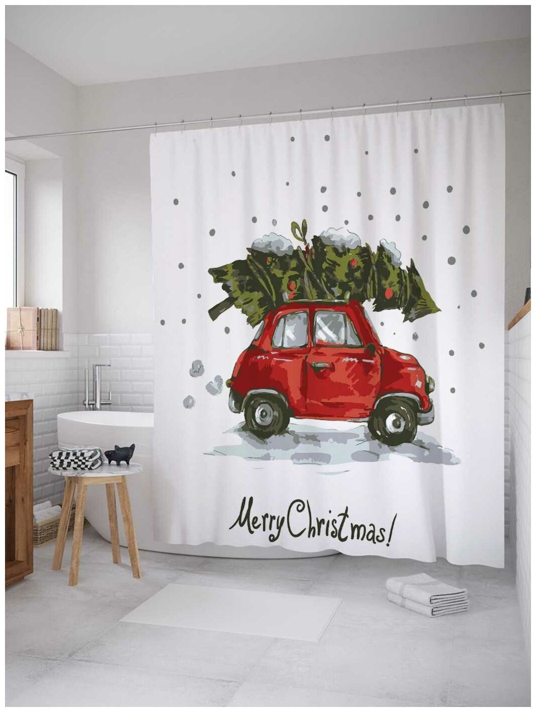Шторка-занавеска для ванной JOYARTY Штора для ванной Елка спешит праздновать 180х200 см