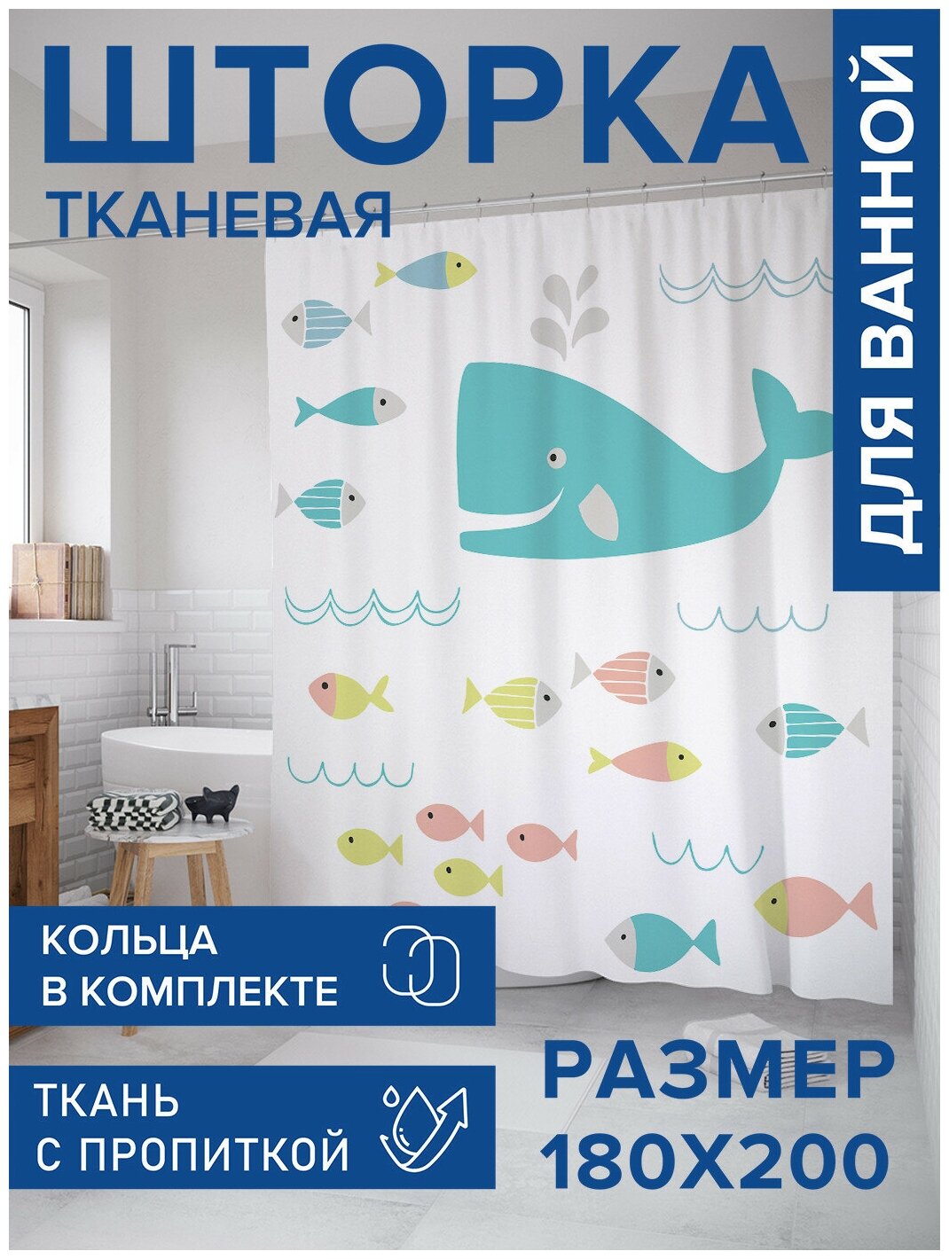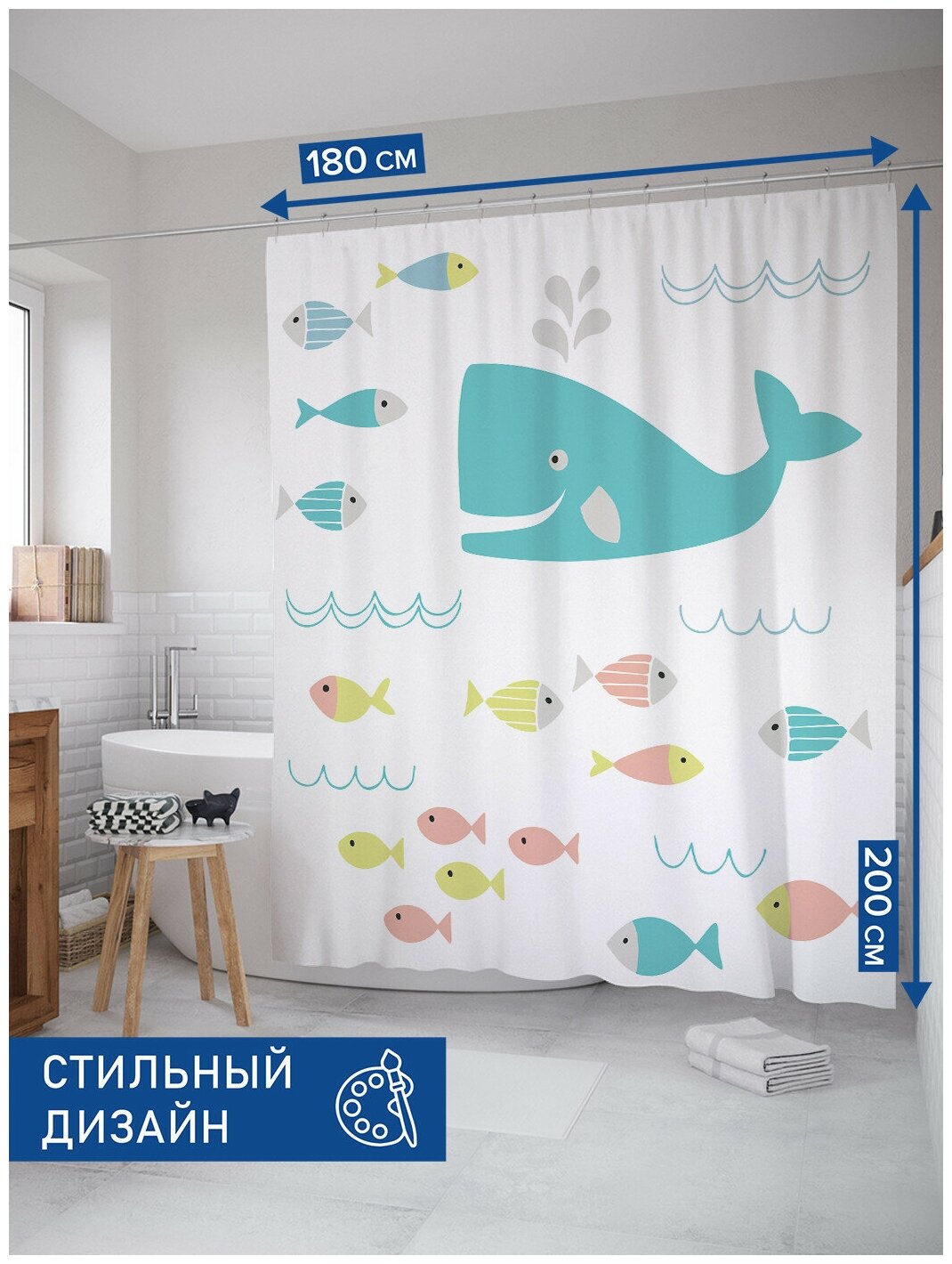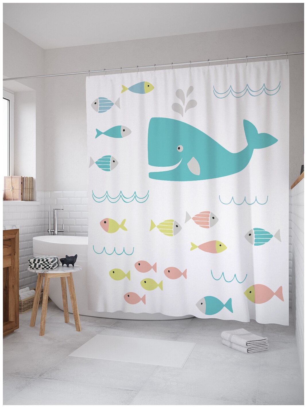 Шторка-занавеска для ванной JOYARTY Штора для ванной Морские рыбы и кит 180х200 см