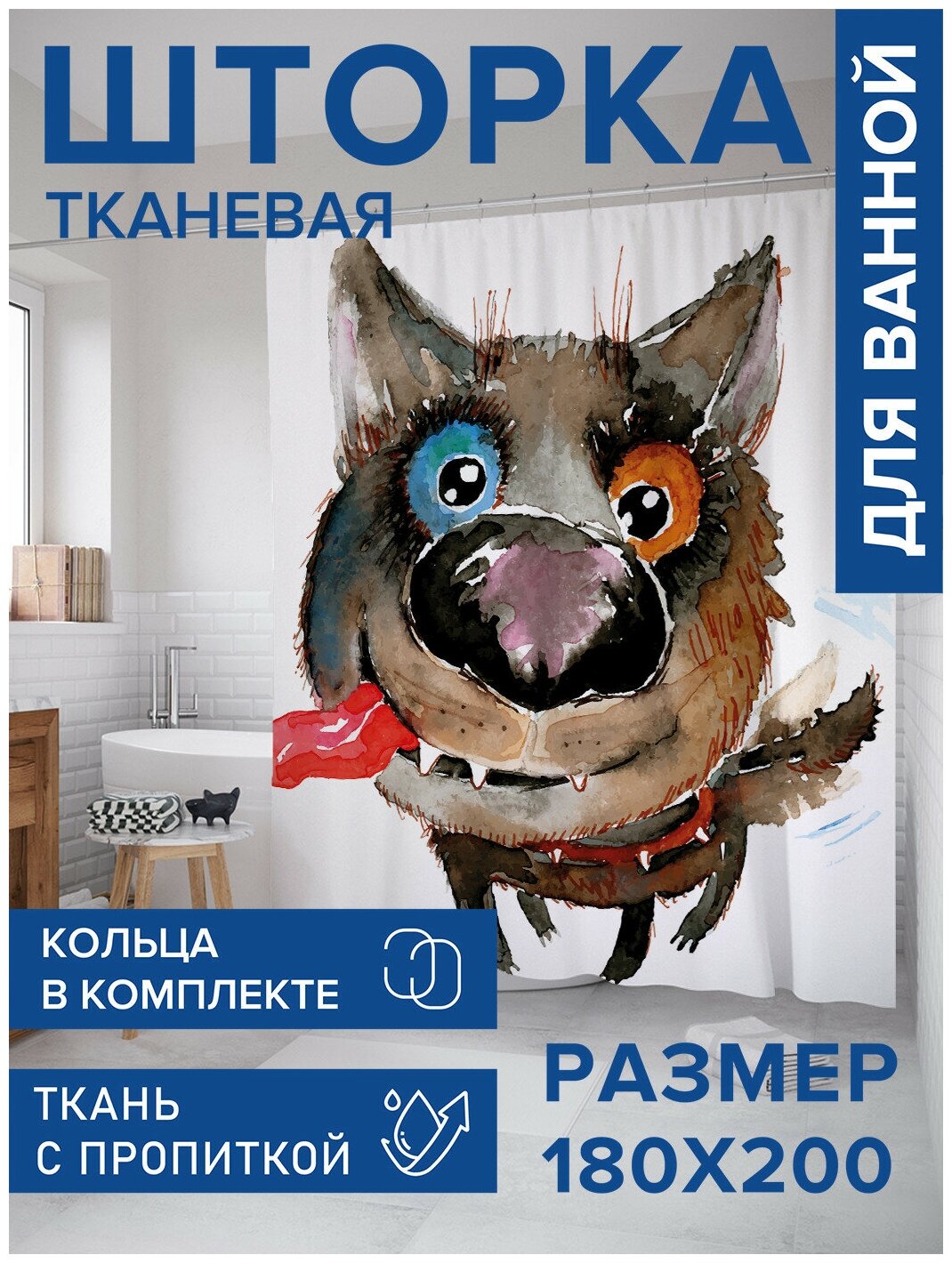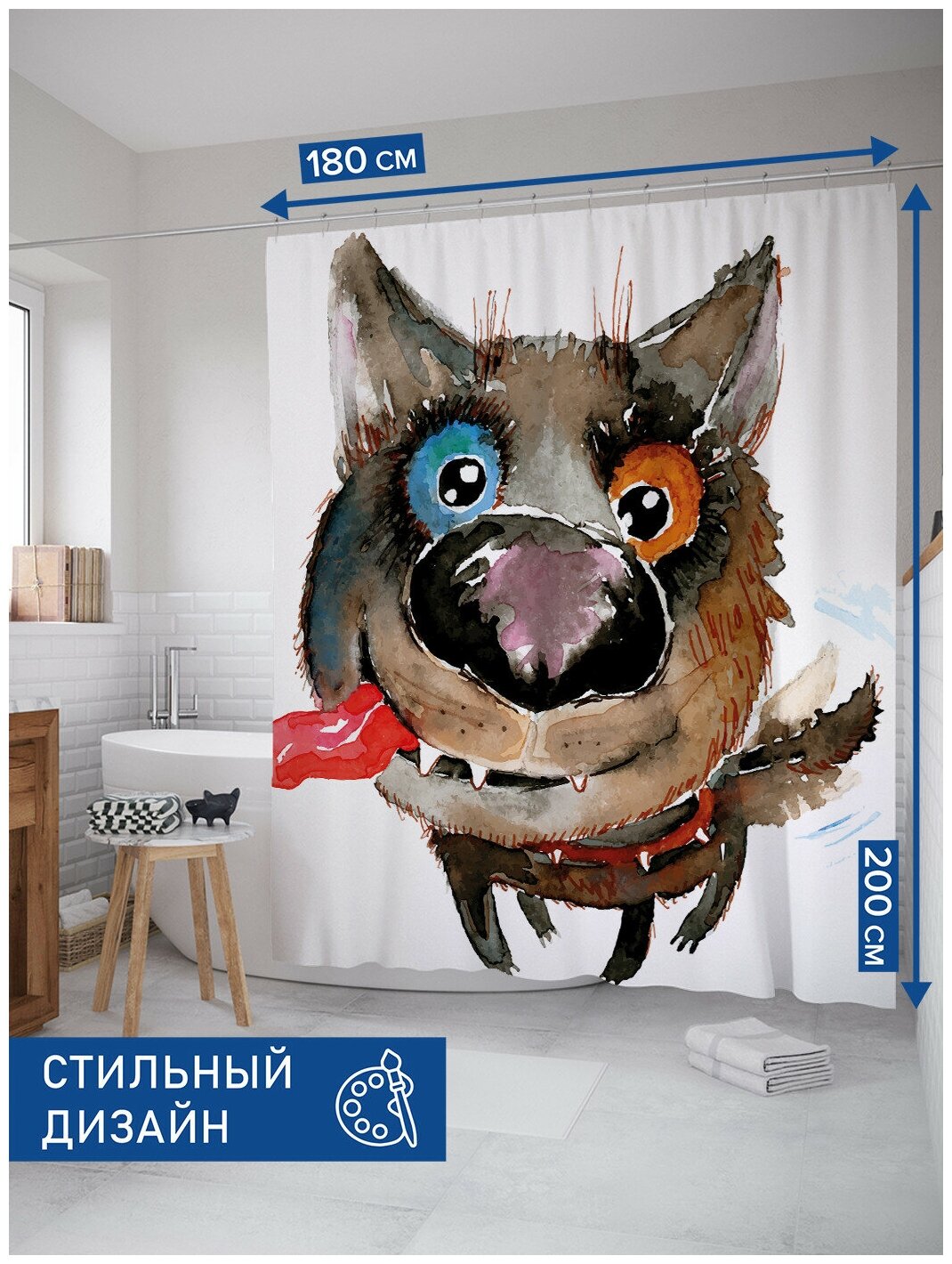 Шторка-занавеска для ванной JOYARTY Штора для ванной Дружелюбный пес 180х200 см
