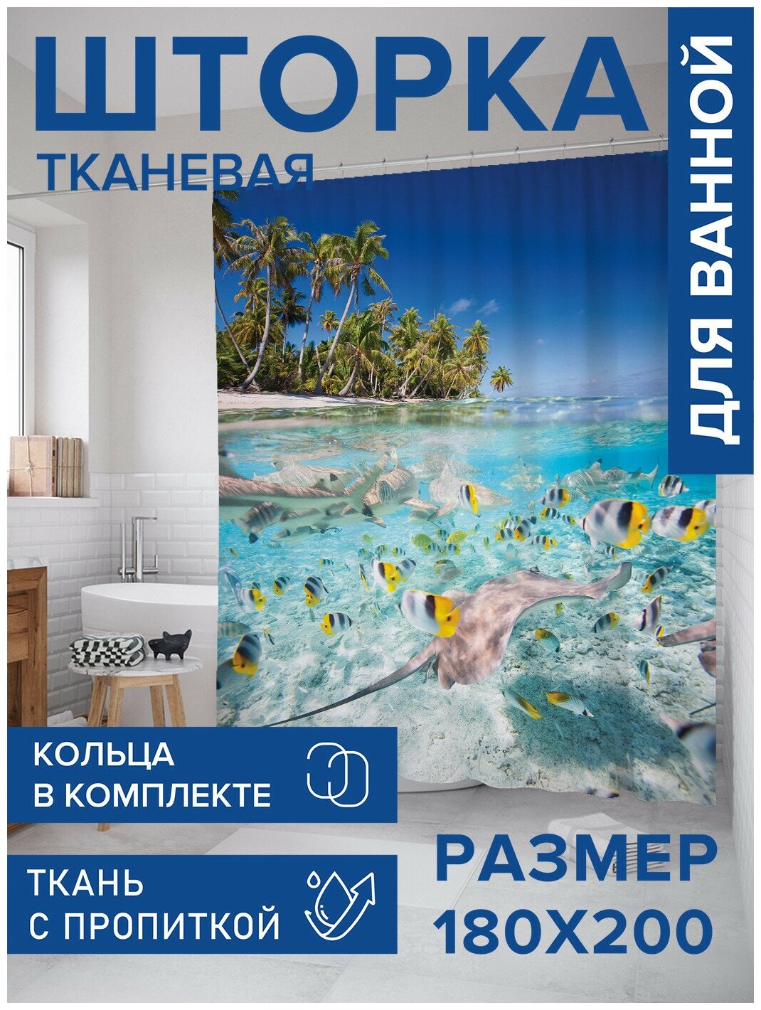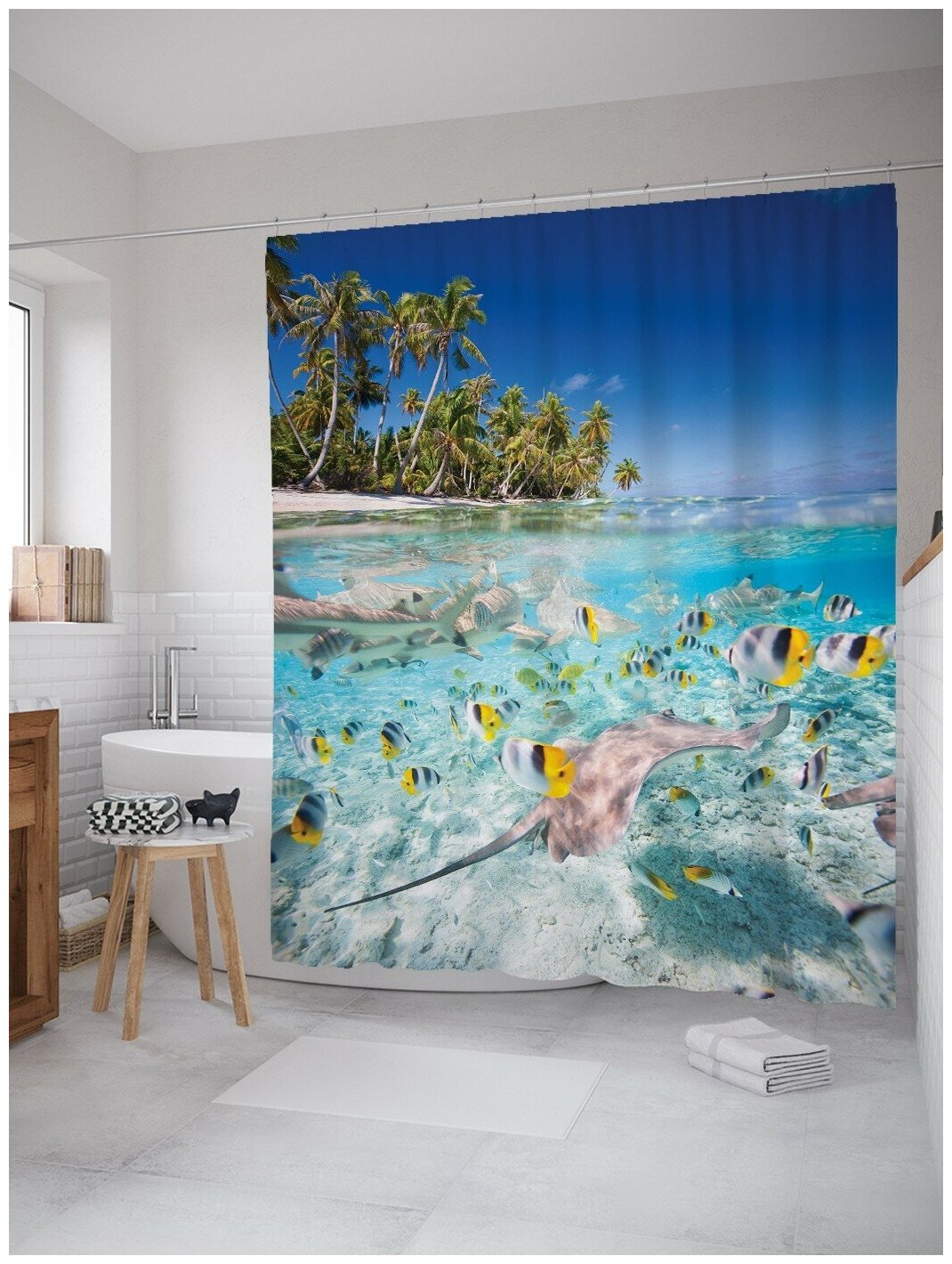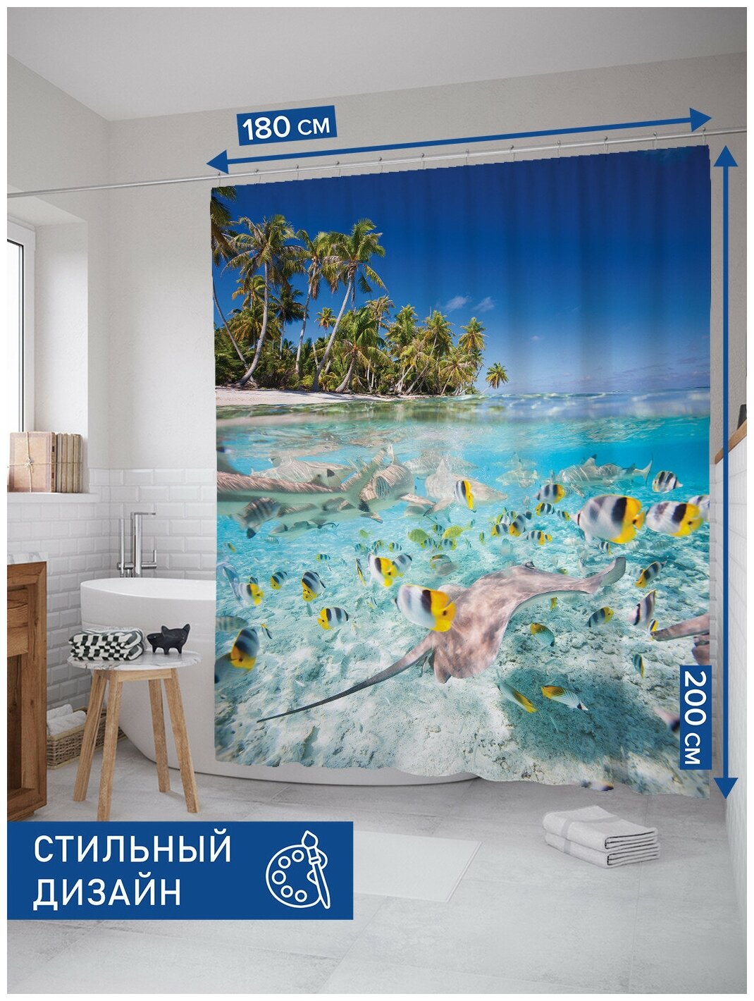 Шторка-занавеска для ванной JOYARTY Штора для ванной Рыбы под берегом 180х200 см