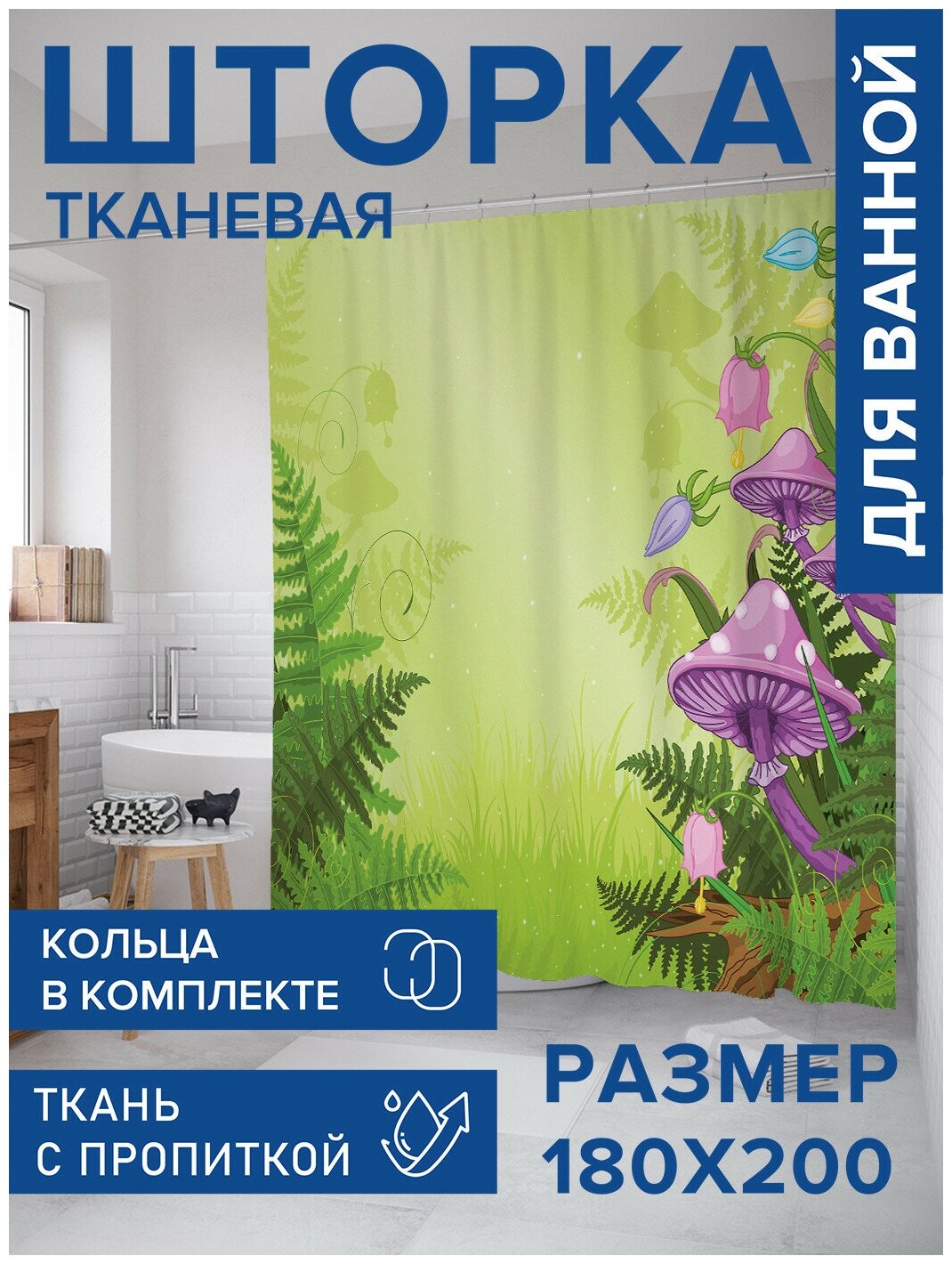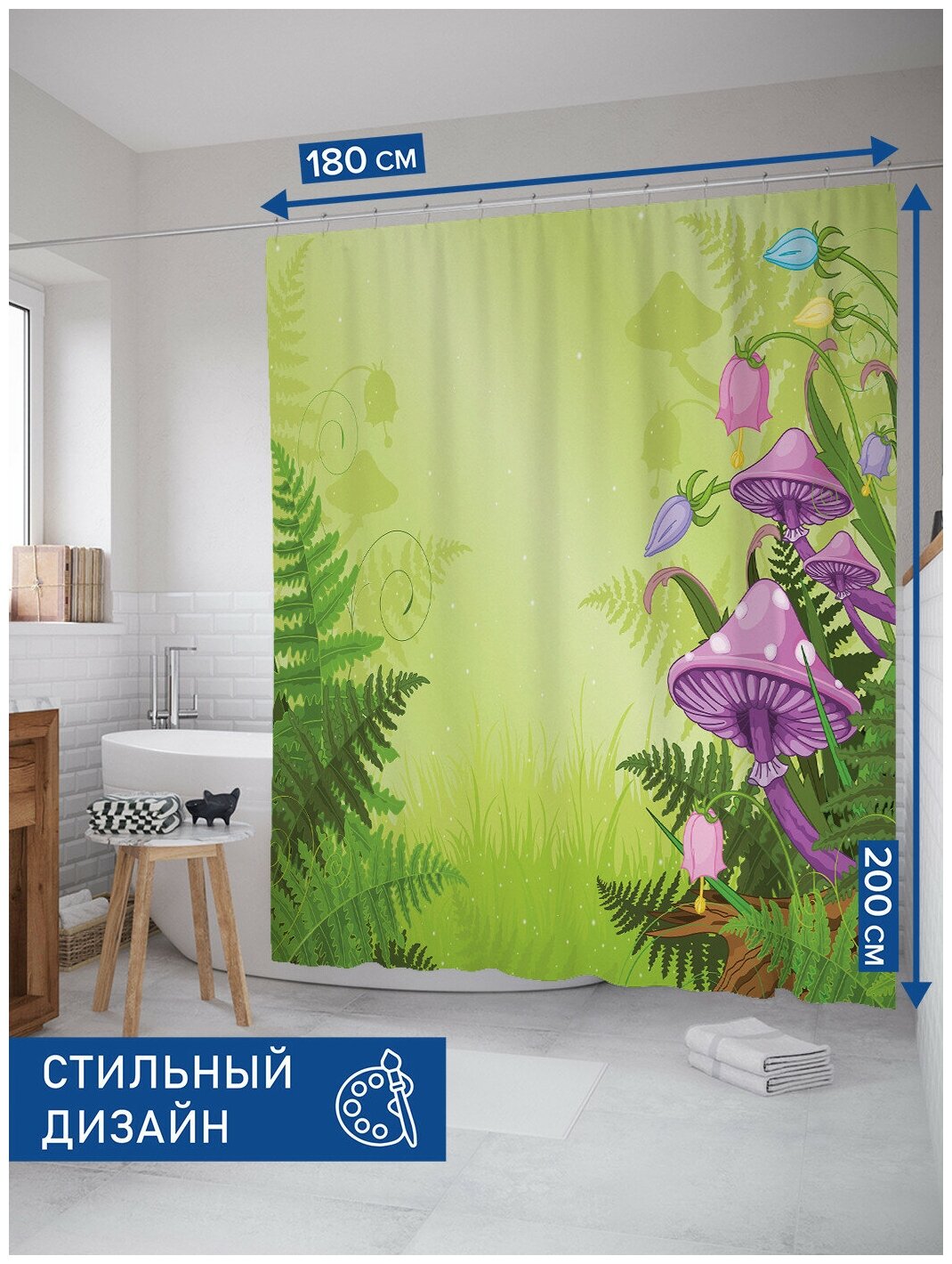 Модель: Штора для ванной Грибочный лес 180х200 см