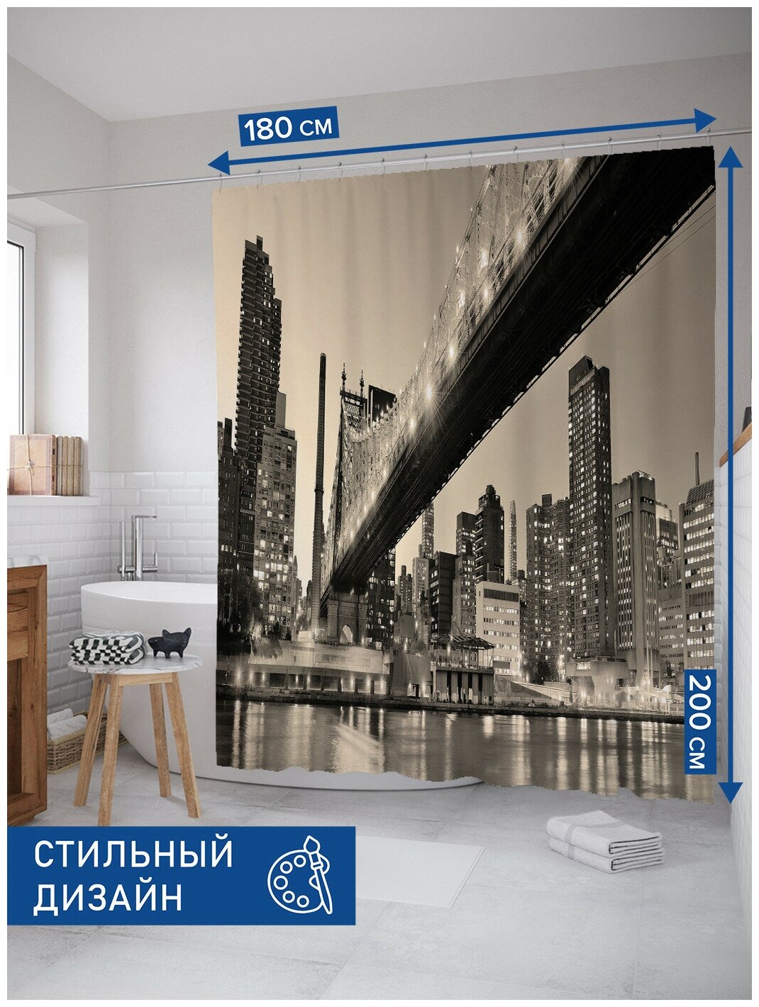 Шторка-занавеска для ванной JOYARTY Штора для ванной Сепия огней мегаполиса 180х200 см