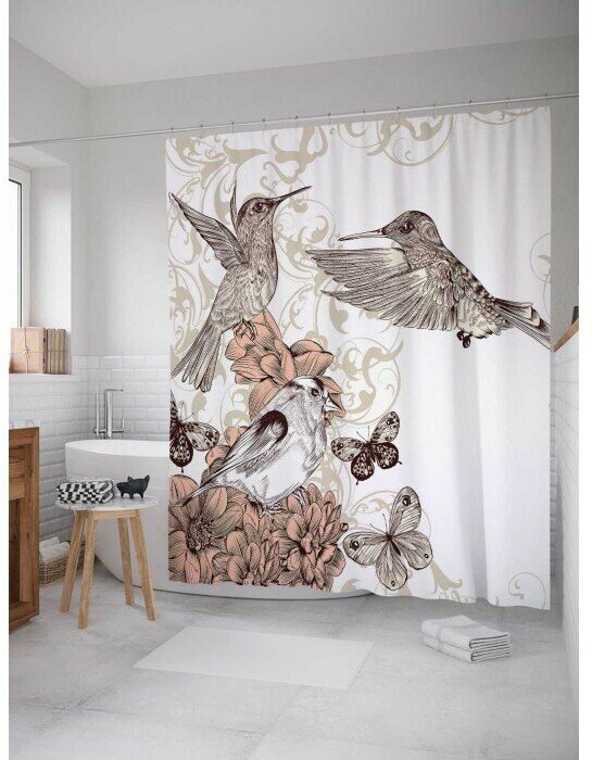 Шторка-занавеска для ванной JOYARTY Штора для ванной Колибри соревнуются 180х200 см