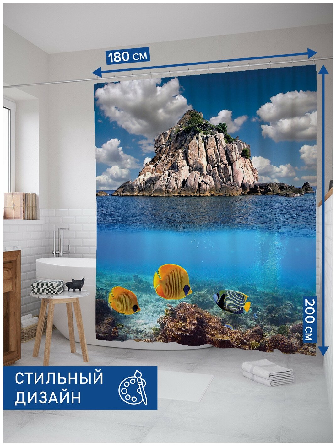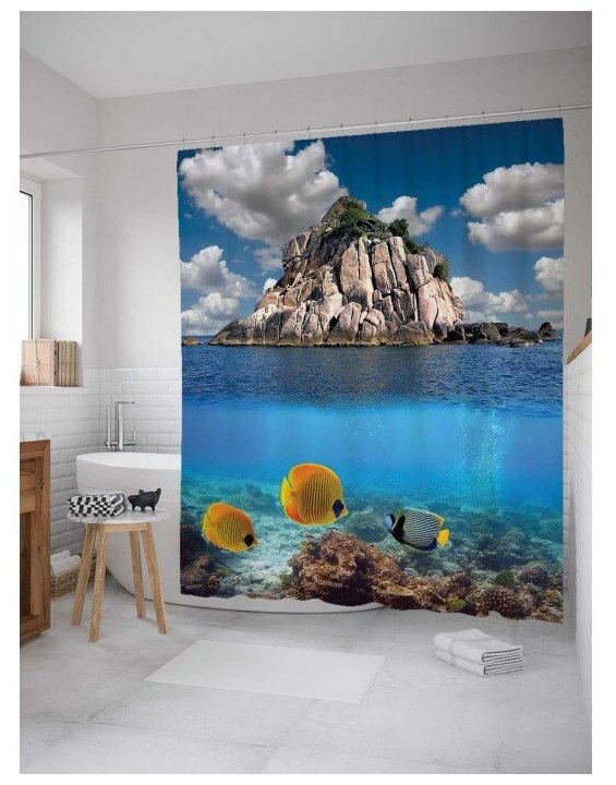 Модель: Штора для ванной Скалистый остров 180х200 см