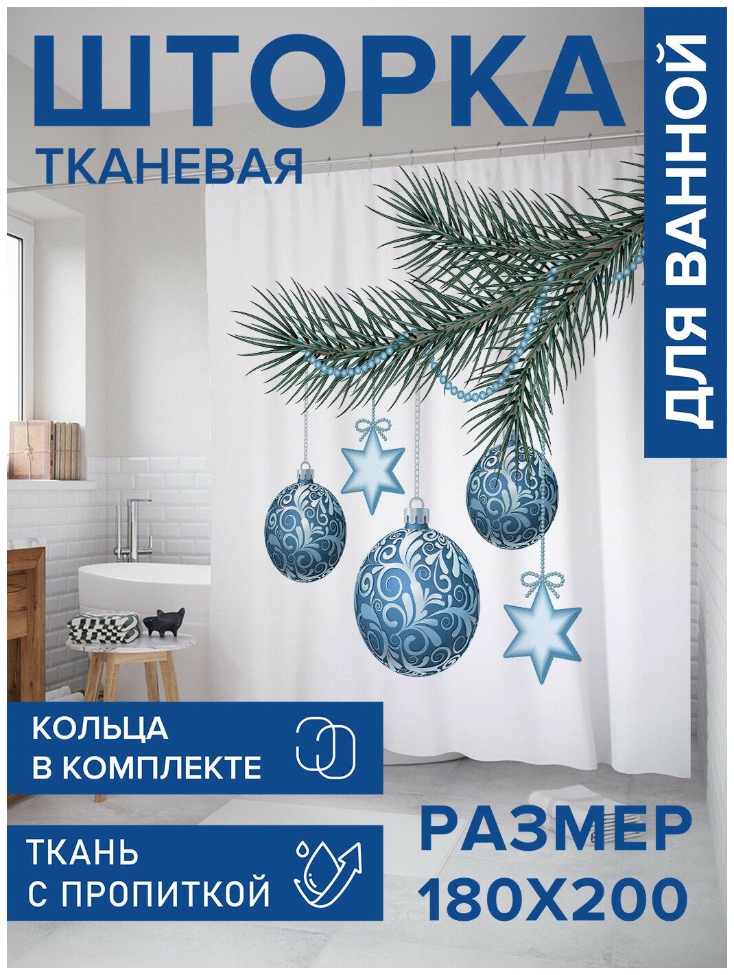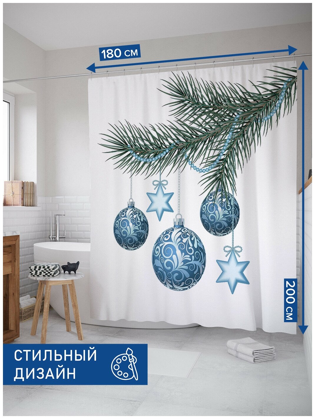 Шторка-занавеска для ванной JOYARTY Штора для ванной Новогодние шары 180х200 см