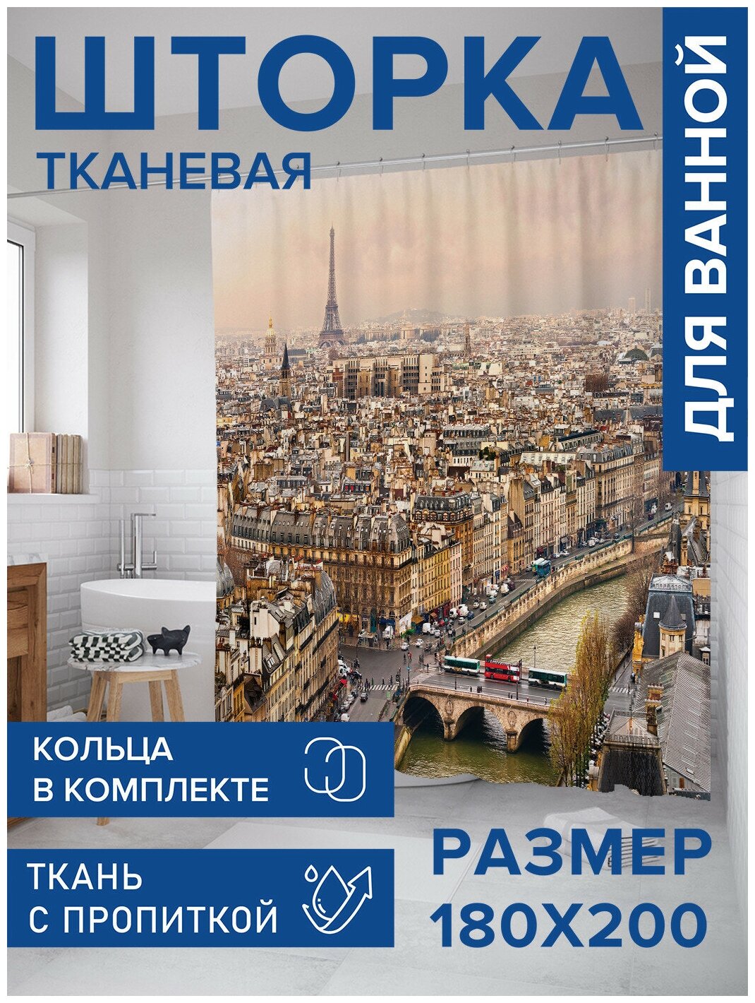 Шторка-занавеска для ванной JOYARTY Штора для ванной Красочный Париж 180х200 см