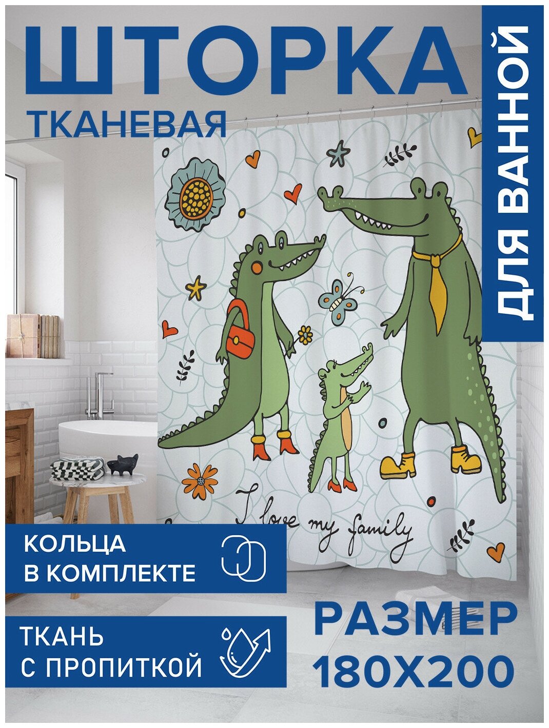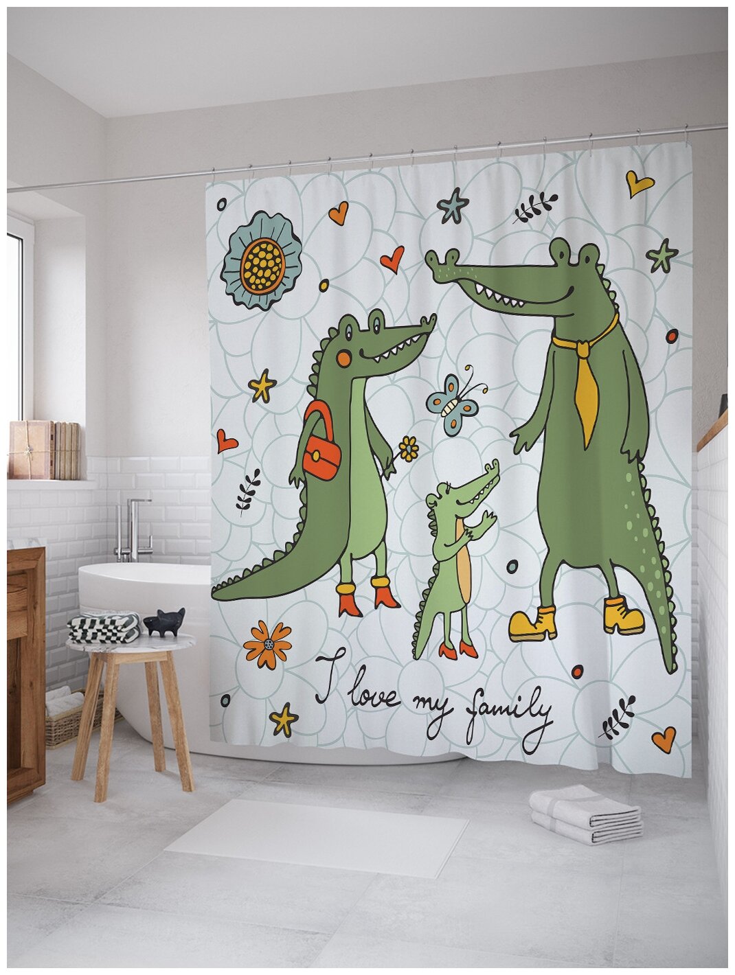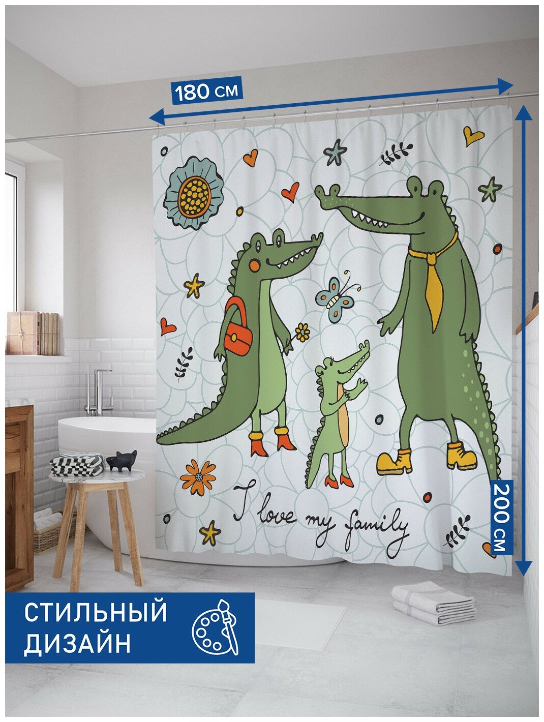 Шторка-занавеска для ванной JOYARTY Штора для ванной Семья крокодилов 180х200 см