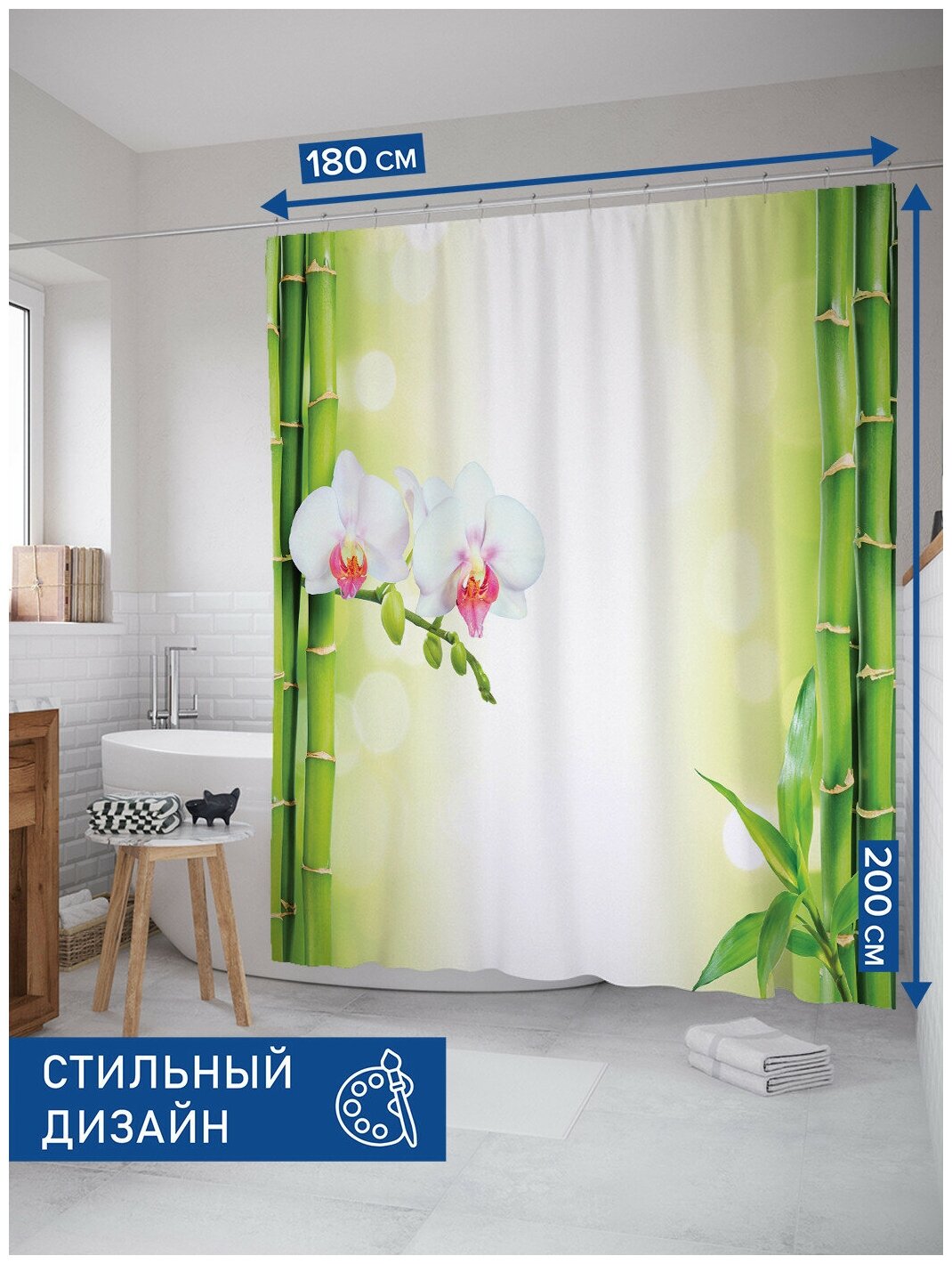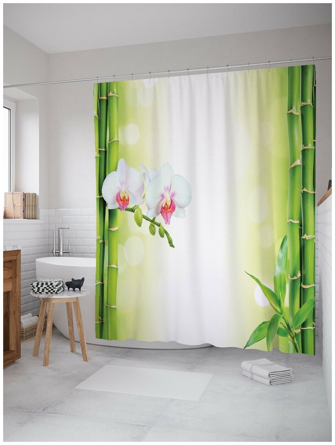 Шторка-занавеска для ванной JOYARTY Штора для ванной Орхидея и бамбук 180х200 см