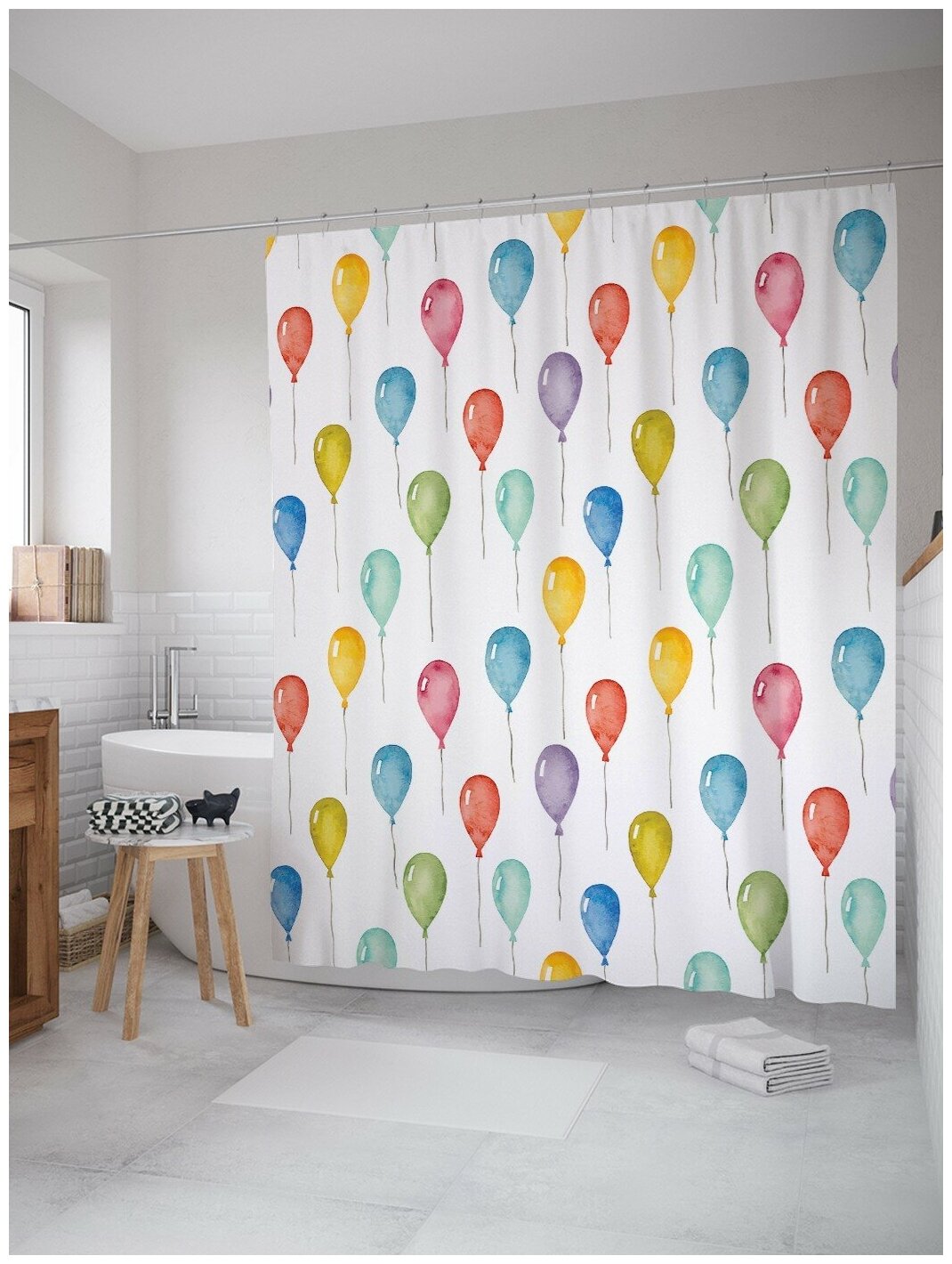 Сервис сравнения цен СкидкаГИД предлагает сравнить цены на товар «Шторка-занавеска для ванной JOYARTY Штора для ванной Шары взлетают в небо 180х200 см»