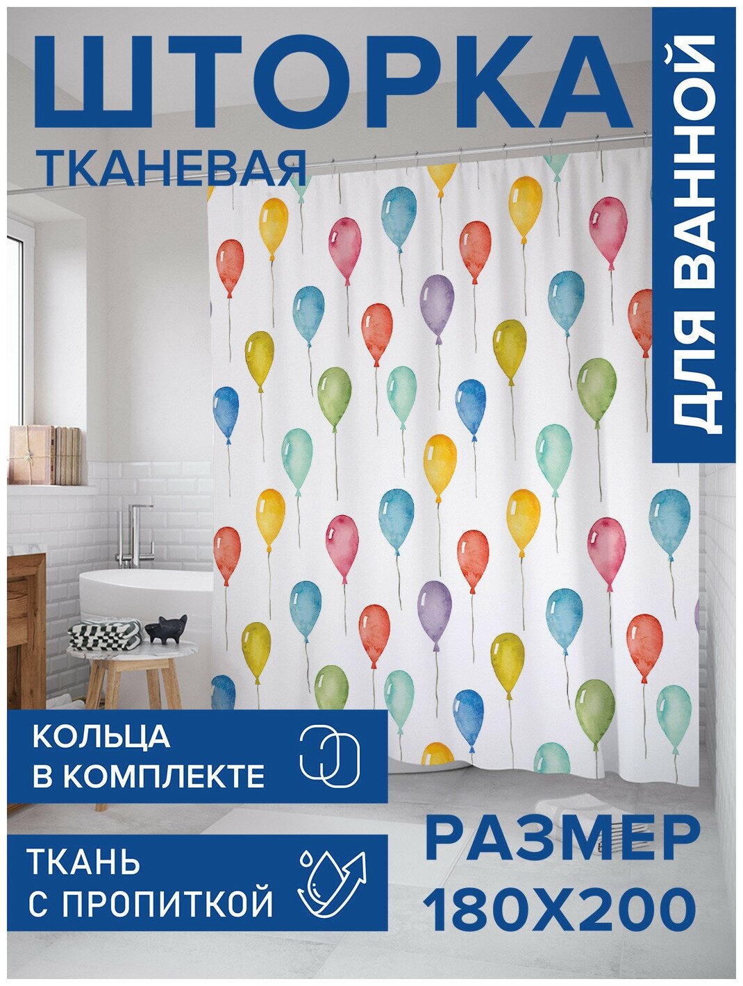 Модель: Штора для ванной Шары взлетают в небо 180х200 см