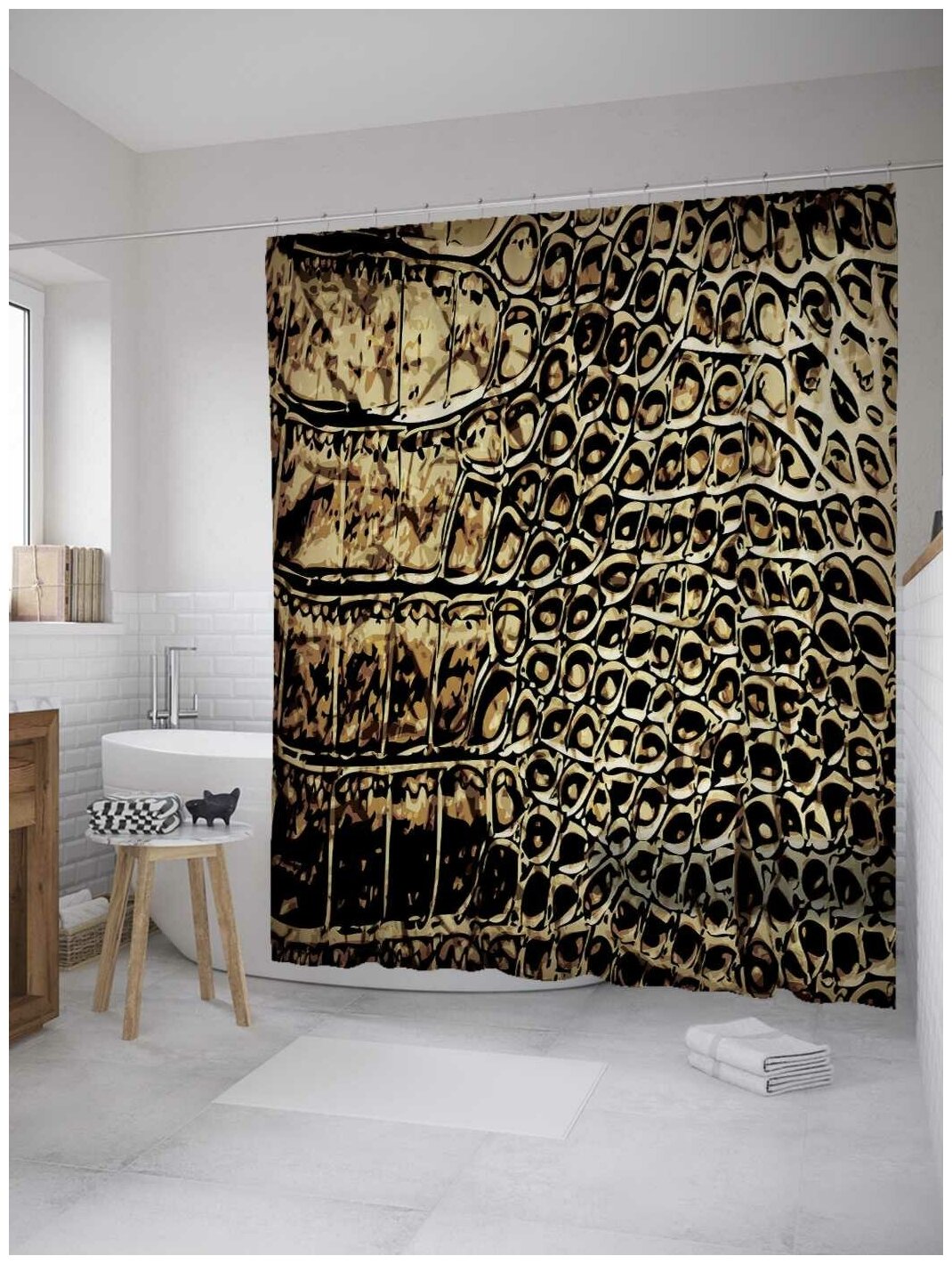 Красиво декорированная шторка, защищающая пол и оборудование ванной комнаты от брызг воды, изготовлена из полиэстера и обладает выраженными водоотталкивающими свойствами. Занавеска для ванной 180х200 комплектуется 12 прочными крючками из пластика и имеет в верхней части столько же обработанных на оверлоке отверстий. Декоративный рисунок нанесен на поверхность ткани при помощи фотопечати. Такие принты не боятся влаги и не смываются даже очень горячей водой.