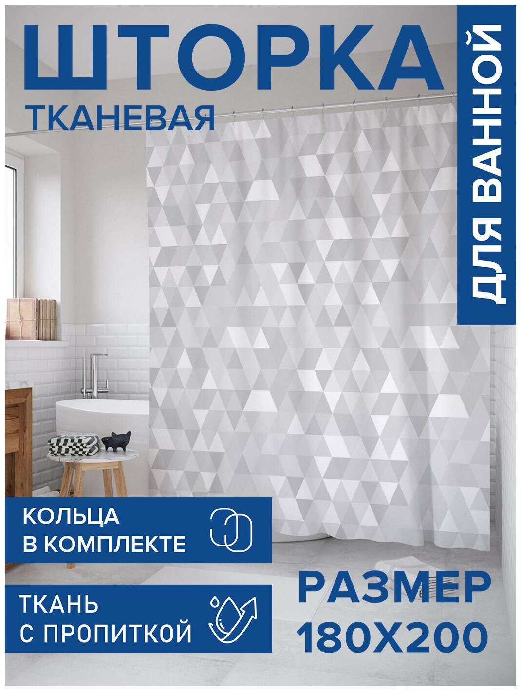 Модель: Штора для ванной Мраморные треугольники 180х200 см