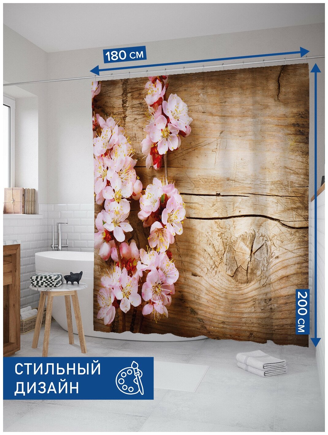 Шторка-занавеска для ванной JOYARTY Штора для ванной Ветка вишни на дереве 180х200 см