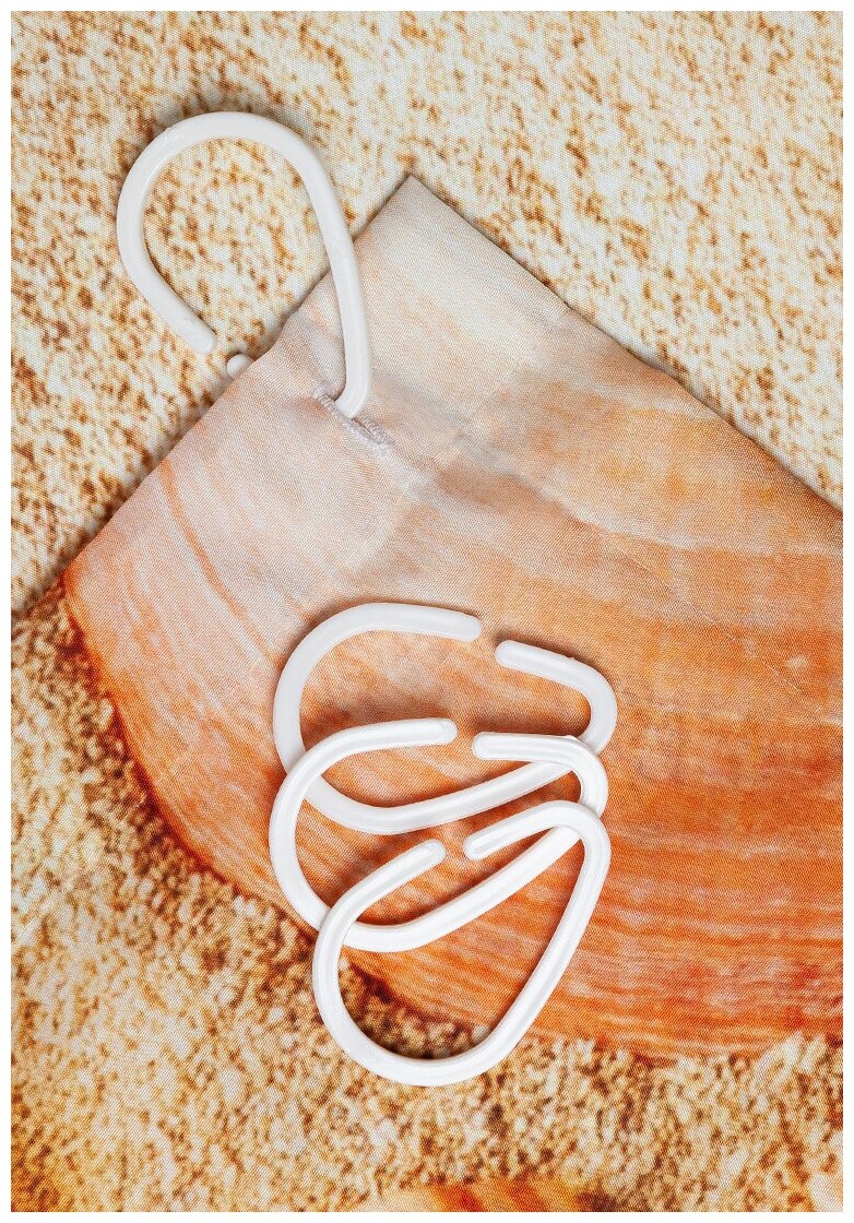Красиво декорированная шторка, защищающая пол и оборудование ванной комнаты от брызг воды, изготовлена из полиэстера и обладает выраженными водоотталкивающими свойствами. Занавеска для ванной 180х200 комплектуется 12 прочными крючками из пластика и имеет в верхней части столько же обработанных на оверлоке отверстий. Декоративный рисунок нанесен на поверхность ткани при помощи фотопечати. Такие принты не боятся влаги и не смываются даже очень горячей водой.