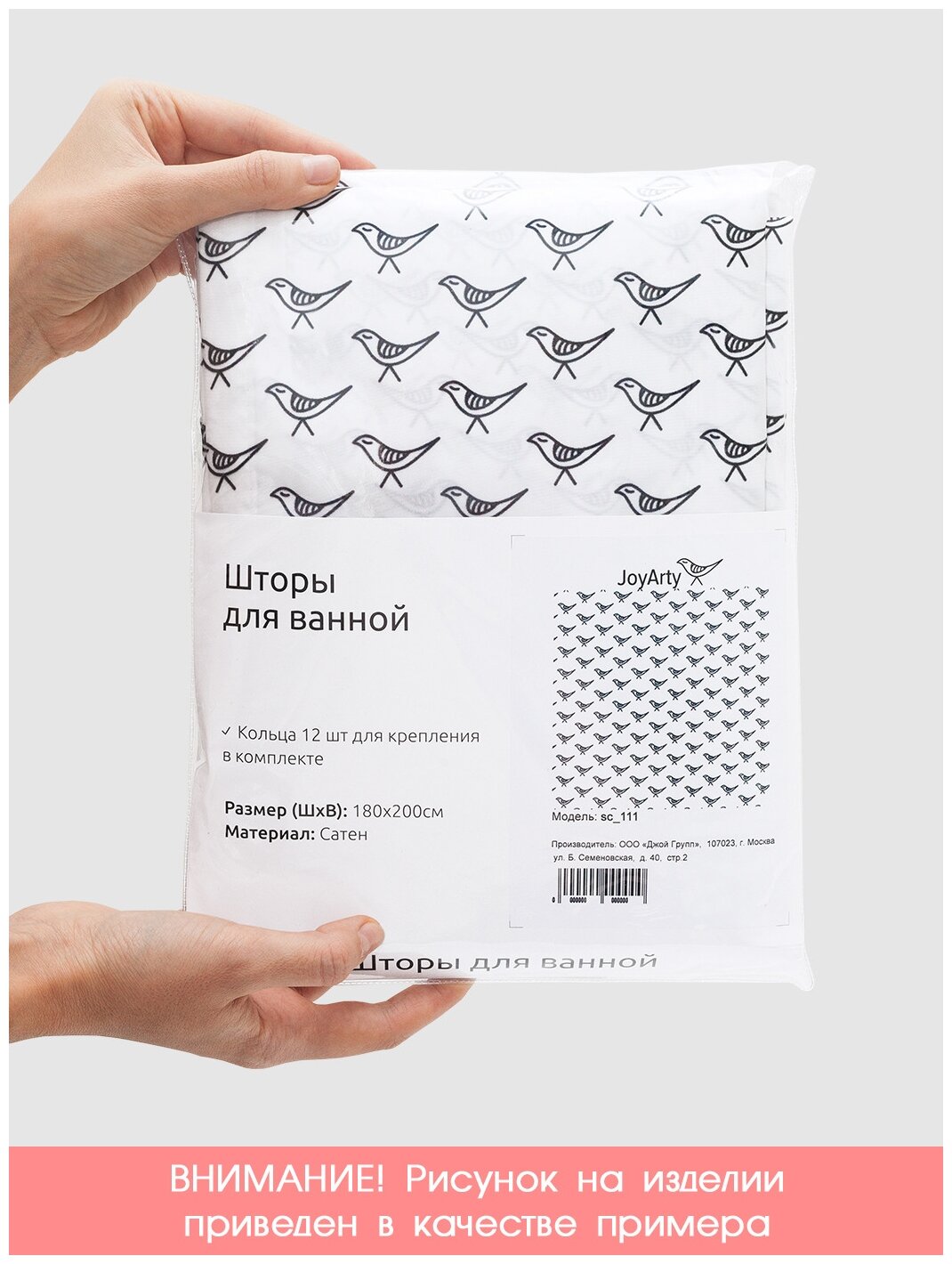 Красиво декорированная шторка, защищающая пол и оборудование ванной комнаты от брызг воды, изготовлена из полиэстера и обладает выраженными водоотталкивающими свойствами. Занавеска для ванной 180х200 комплектуется 12 прочными крючками из пластика и имеет в верхней части столько же обработанных на оверлоке отверстий. Декоративный рисунок нанесен на поверхность ткани при помощи фотопечати. Такие принты не боятся влаги и не смываются даже очень горячей водой.