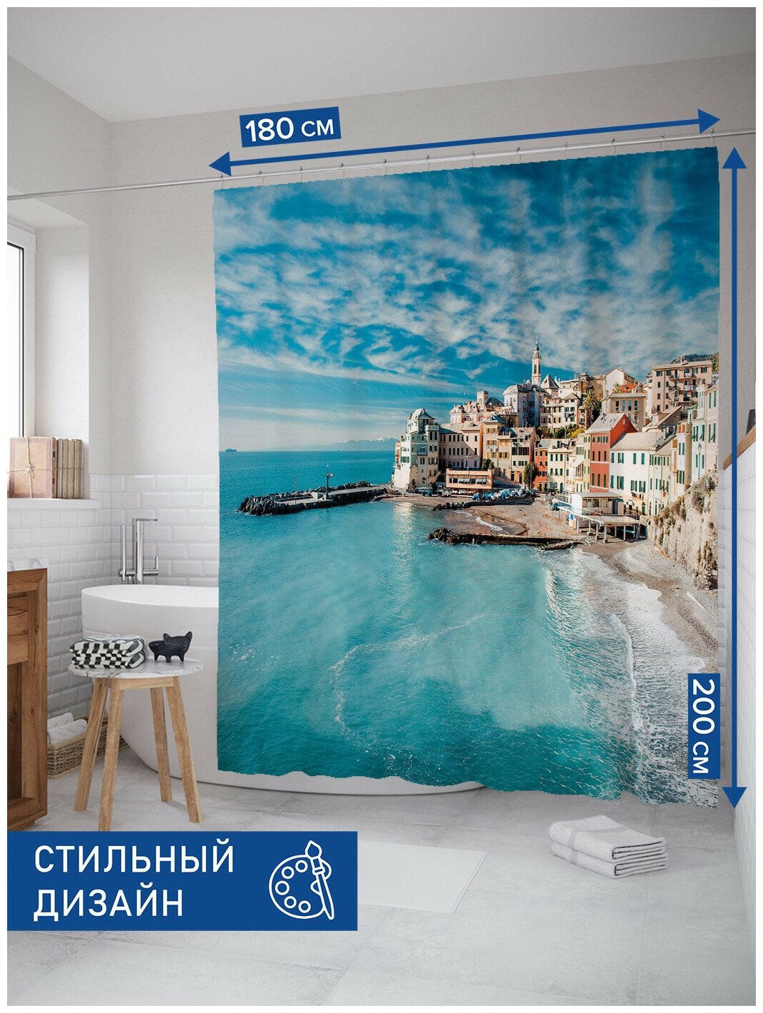 Шторка-занавеска для ванной JOYARTY Штора для ванной Город на пляже 180х200 см