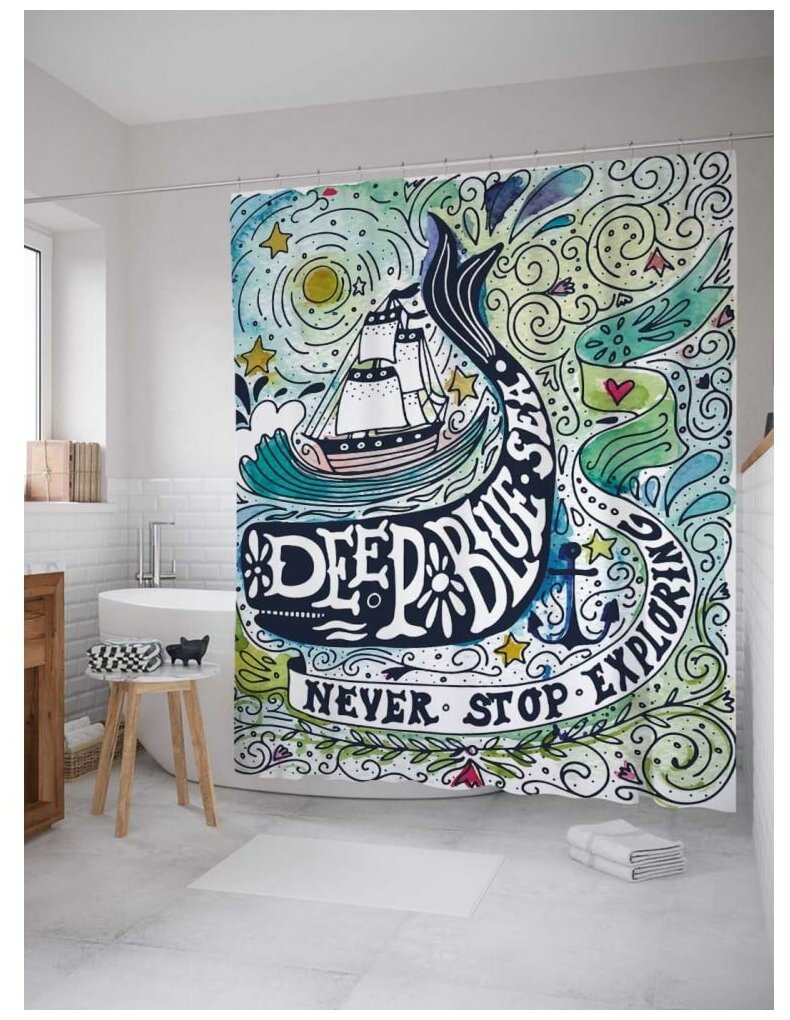 Сервис сравнения цен СкидкаГИД предлагает сравнить цены на товар «Шторка-занавеска для ванной JOYARTY Штора для ванной Кит ныряет 180х200 см»