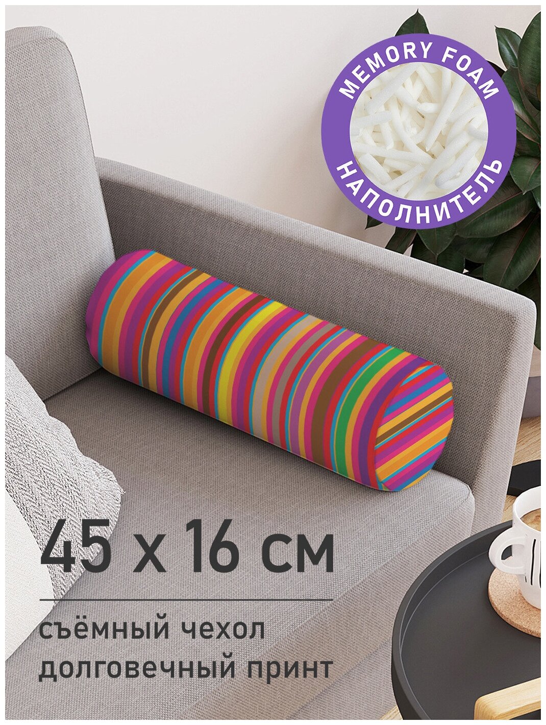 Декоративная подушка валик JoyArty "Строгая радуга" на молнии 45 см диаметр 16 см Декоративная подушка валик на молнии Строгая радуга 45 см