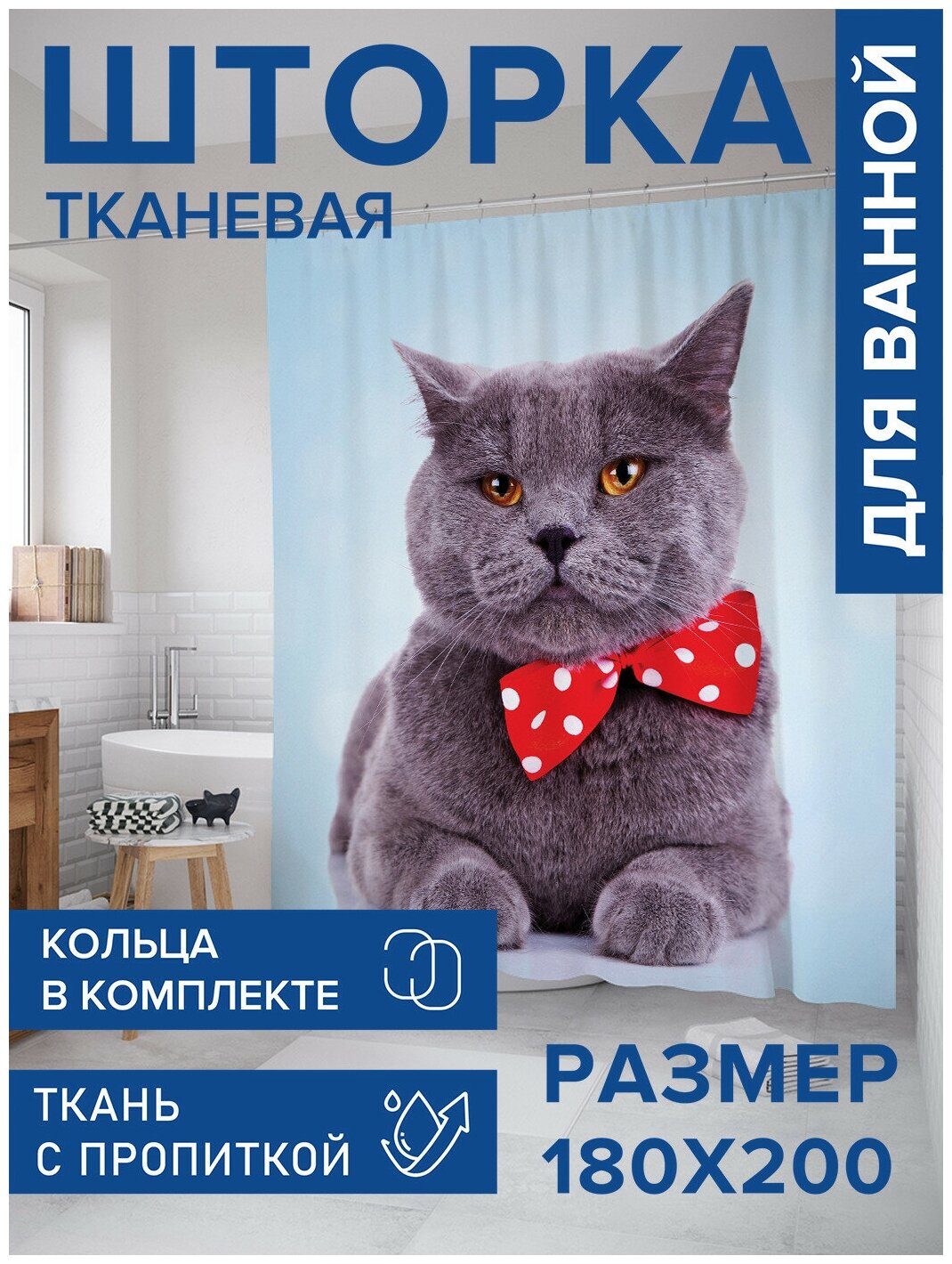 Шторка-занавеска для ванной JOYARTY Штора для ванной Серый Тема Шотландская Вислоухая 180х200 см