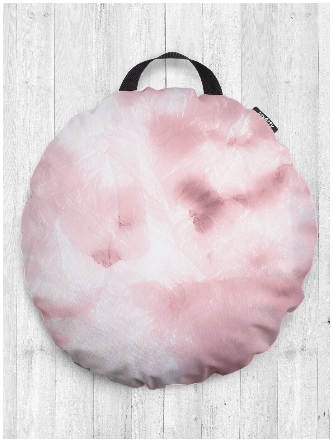 Наполненное полиуретановой крошкой изделие не впитывает влагу, так его чехол обработан безвредной водоотталкивающей пропиткой. Учитывая, что наполнитель помещен в дополнительную внутреннюю наволочку, декоративный чехол с принтами при необходимости удобно снимается для стирки. Бывает неудобно сидеть не только на полу, поэтому изделие можно использовать в качестве круглой подушки на табурет, деревянный стул или старое кресло.