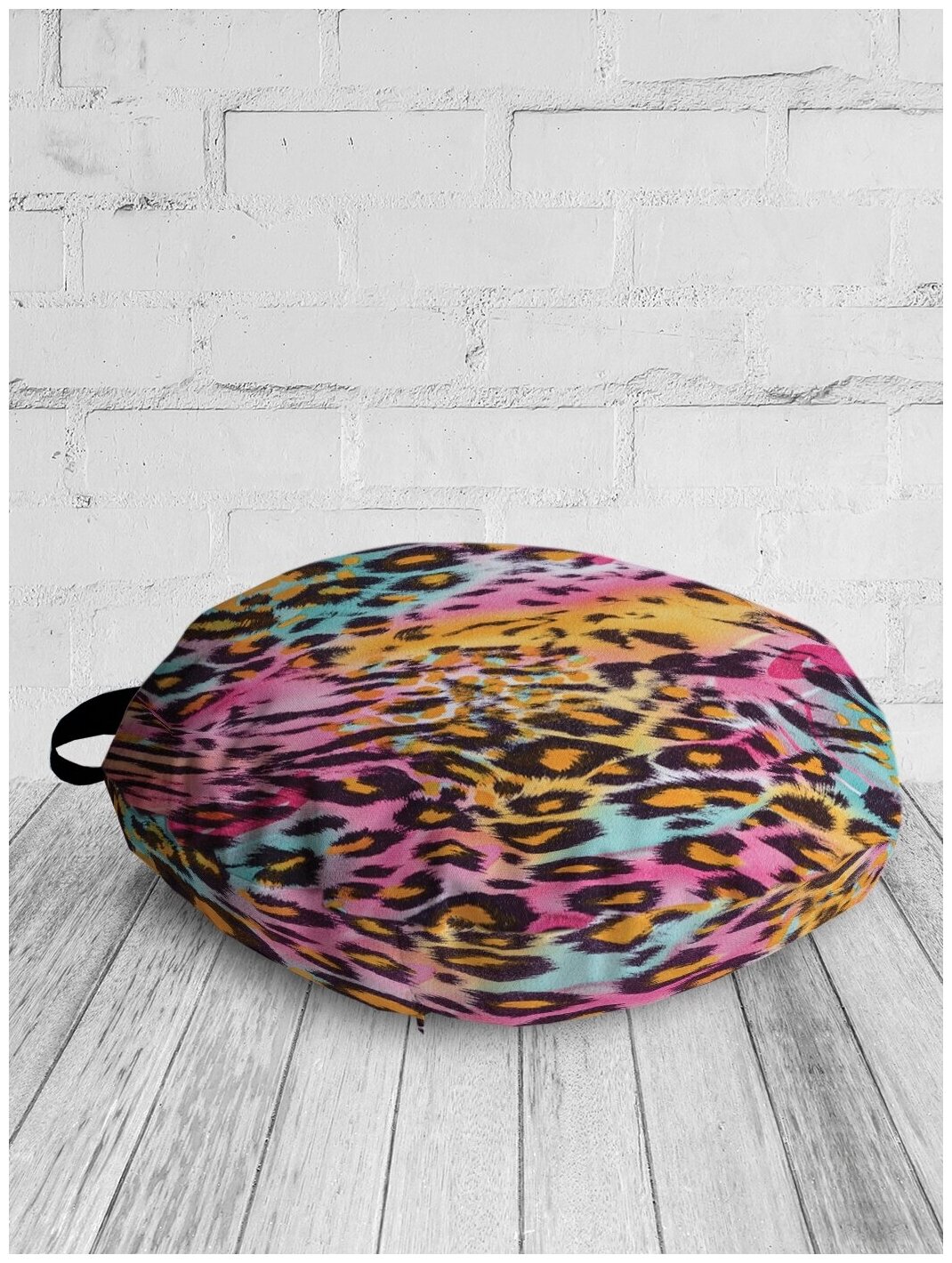 Наполненное полиуретановой крошкой изделие не впитывает влагу, так его чехол обработан безвредной водоотталкивающей пропиткой. Учитывая, что наполнитель помещен в дополнительную внутреннюю наволочку, декоративный чехол с принтами при необходимости удобно снимается для стирки. Бывает неудобно сидеть не только на полу, поэтому изделие можно использовать в качестве круглой подушки на табурет, деревянный стул или старое кресло.