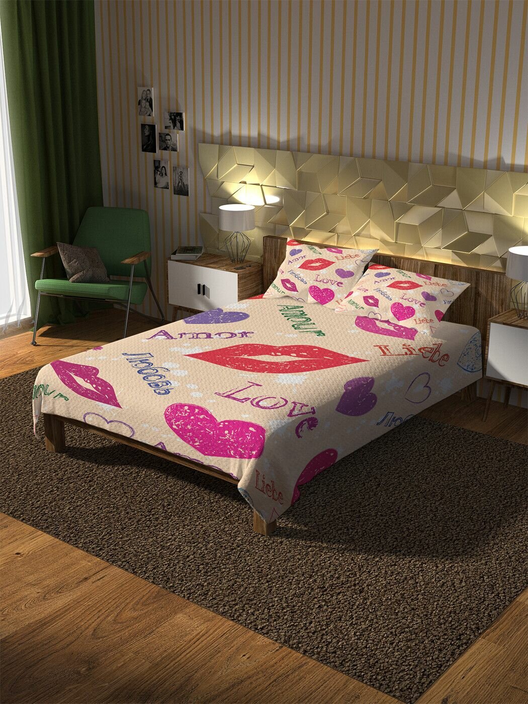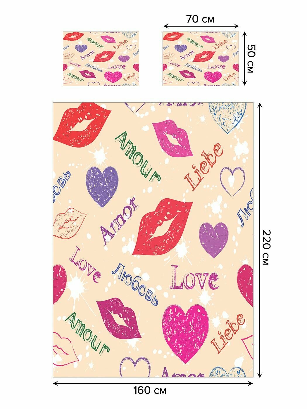 Модель: Покрывало стеганое Любовь на разных языках 235x220 и две наволочки 70х50