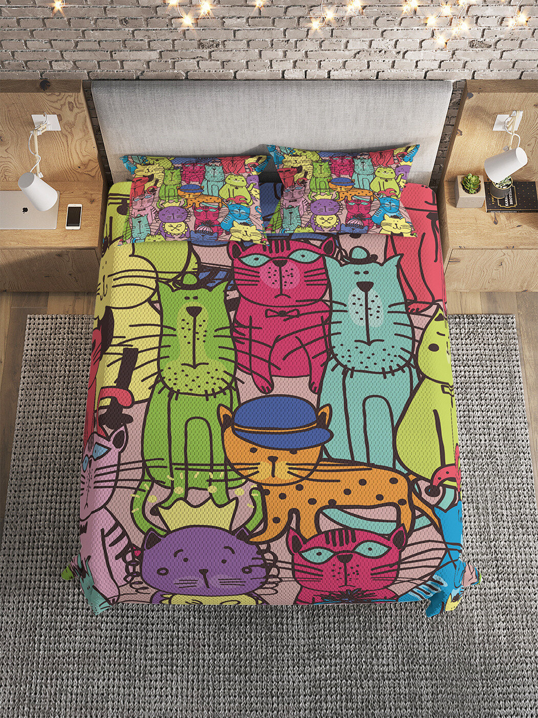 Покрывало Ambesonne 220х235 см с 2 наволочками 50x70 см Покрывало стеганое Кошачья площадь 235x220 и две наволочки 70х50 (размер: евростандарт)