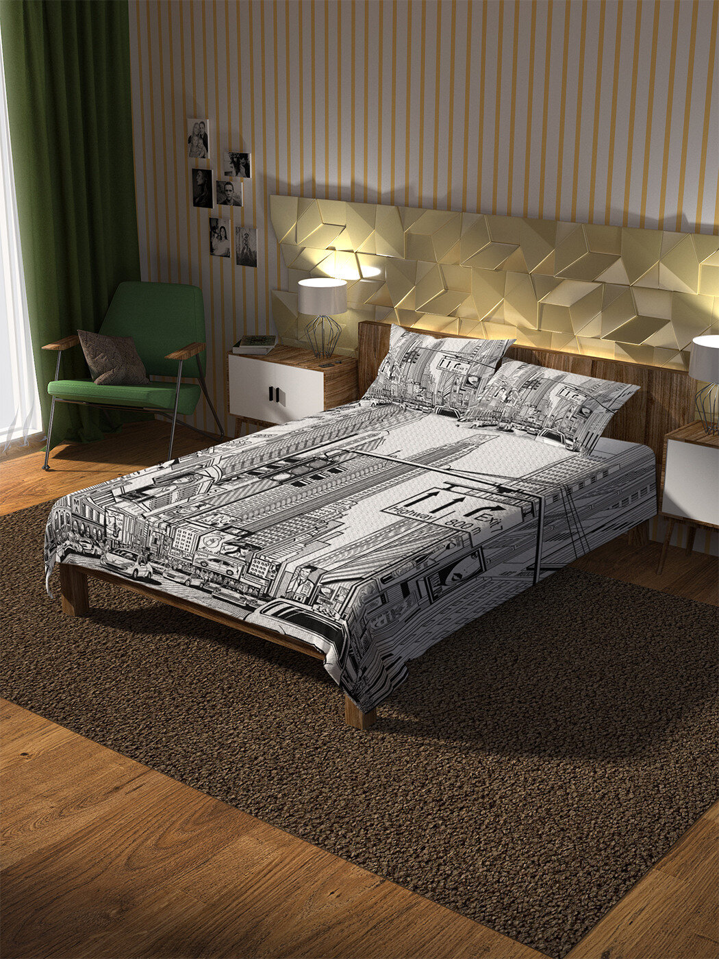 Модель: Покрывало стеганое Город в серости 220х160 и две наволочки 70х50