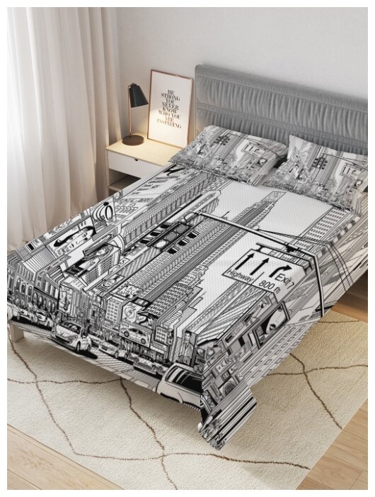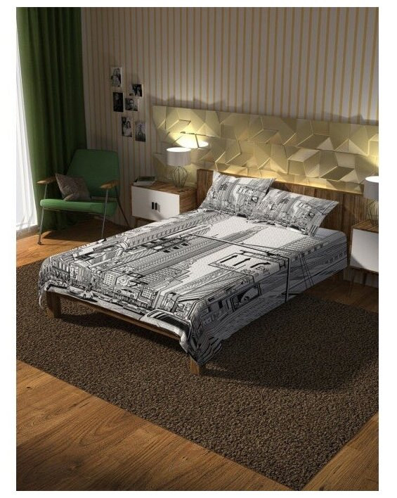 Сервис сравнения цен СкидкаГИД предлагает сравнить цены на товар «Покрывало с чехлами Ambesonne bcsl_2535 160x220 см черный Покрывало стеганое Город в серости 220х160 и две наволочки 70х50 (размер: 1.5-спальный)»