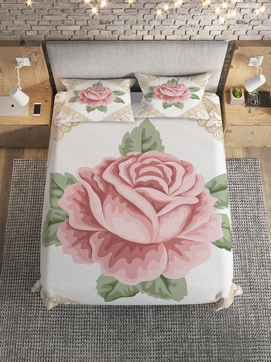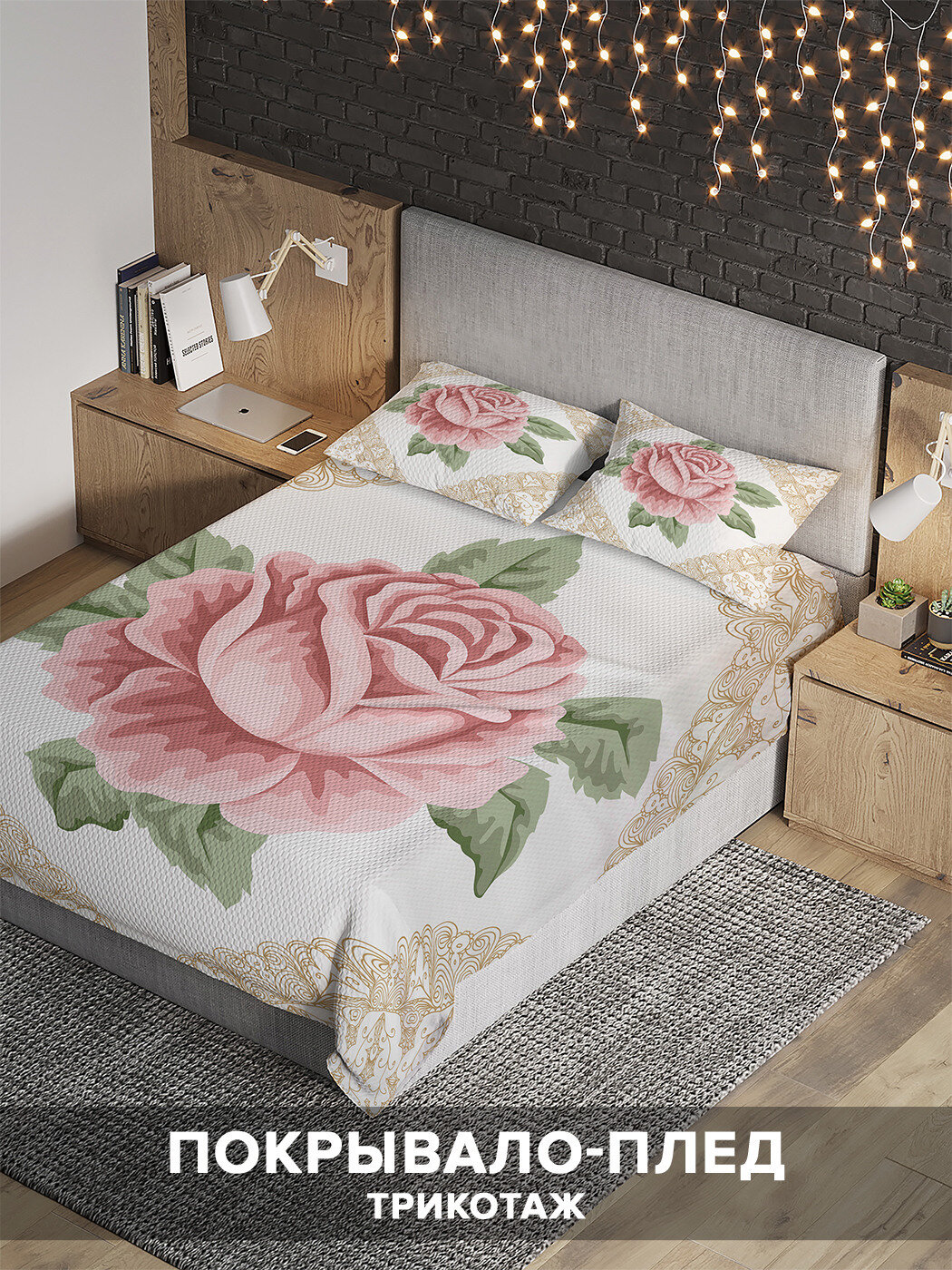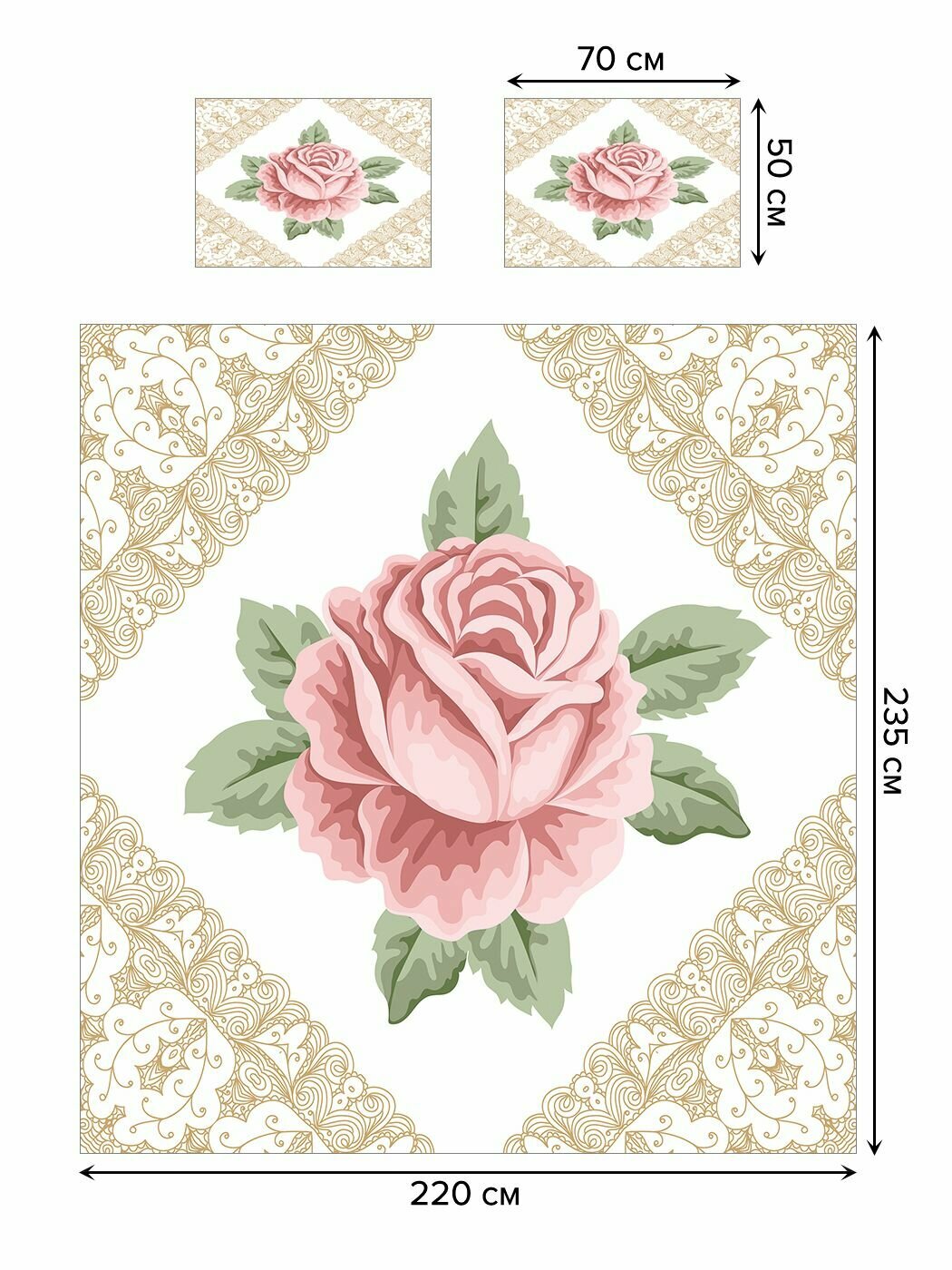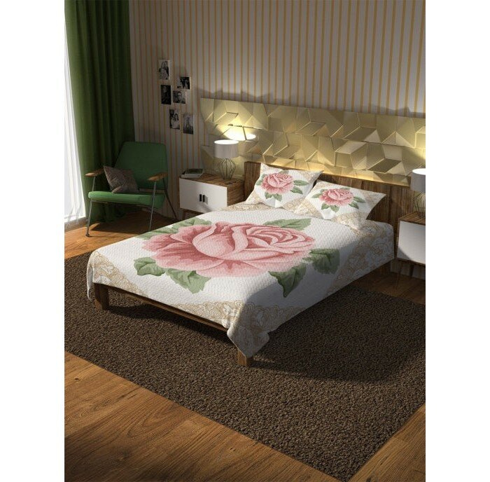 Модель: Покрывало стеганое Роза в рамке 235x220 и две наволочки 70х50