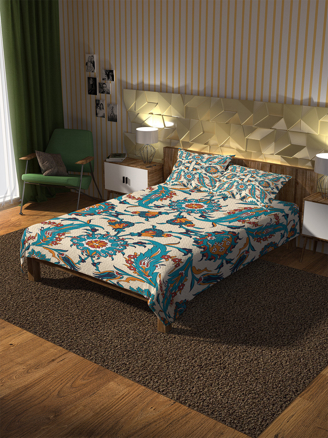 Покрывало с чехлами Ambesonne bcsl_59252 220x235 см голубой Покрывало стеганое Узор Перо Жар-Птицы 235x220 и две наволочки 70х50 (размер: евростандарт)