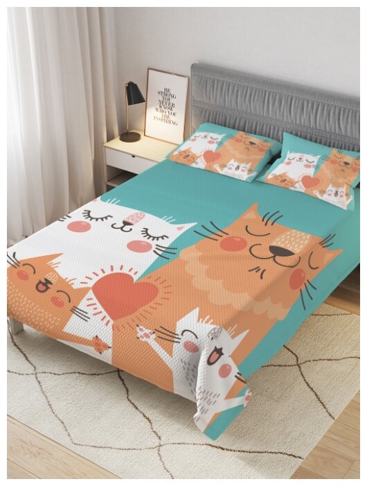 Модель: Покрывало стеганое Веселая кошачья семья 220х160 и две наволочки 70х50
